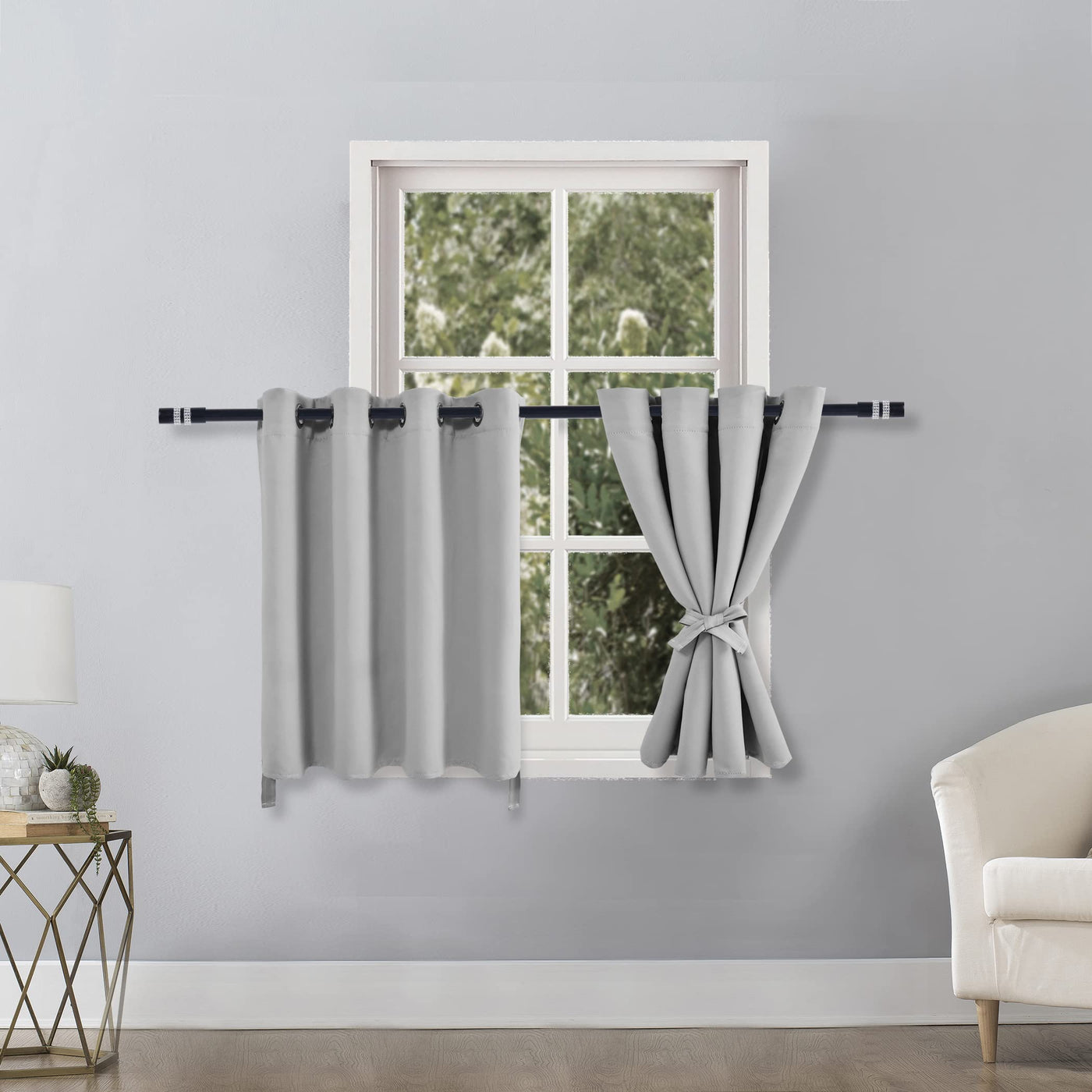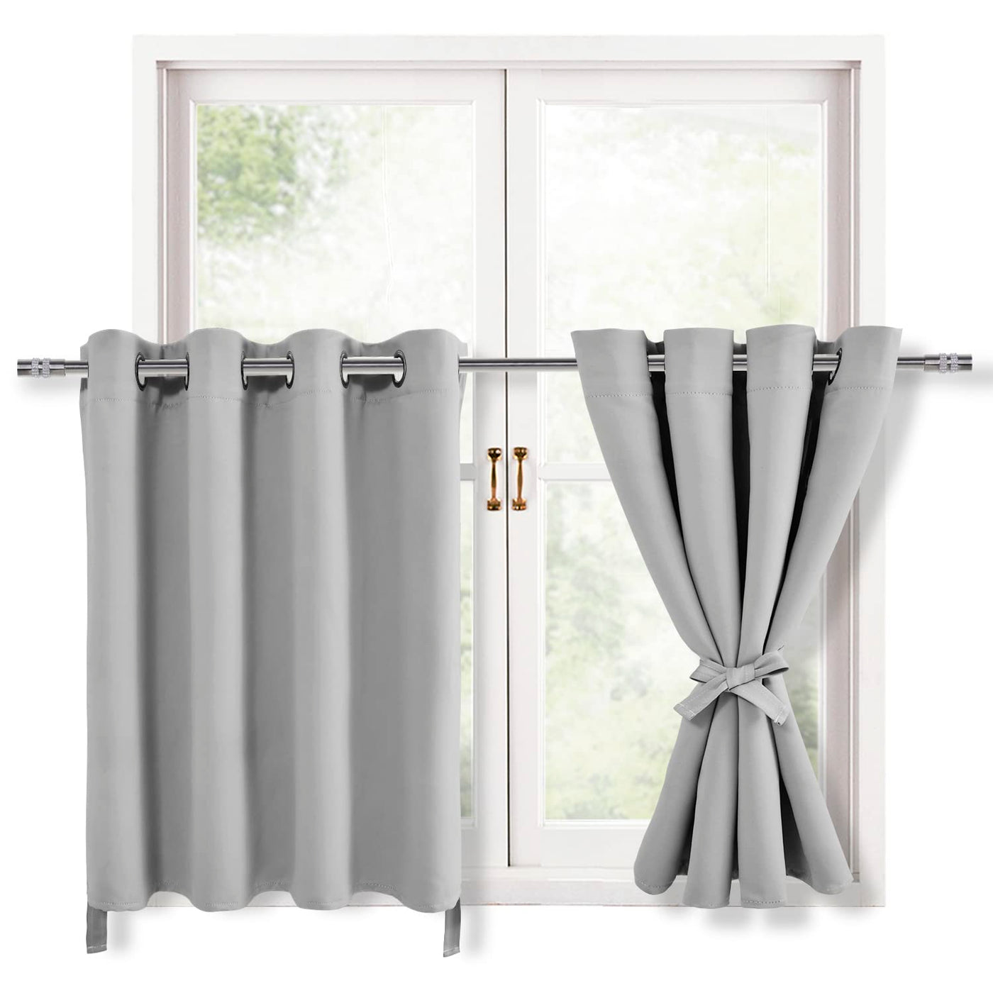 Hiasan Rv Blackout Curtains For Bedroom, 52 X 36 Inches Long - Thermal Insulated & Light Blocking Window Curtains For Living Room, 2 Drape Panels Sewn With Tiebacks, Silver Grey