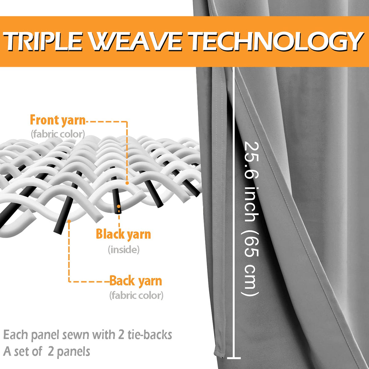 Blackout curtains with 2 tiebacks, help keep your curtains open with minimal effort. You can reduce extra expenses for your window treatments. To tie the two ends of the tiebacks together and then adjust it according to the thickness of your curtain. These new version blackout curtains offer a contemporary solution for holding drapes without the need for tools or drilling holes into trim or walls.