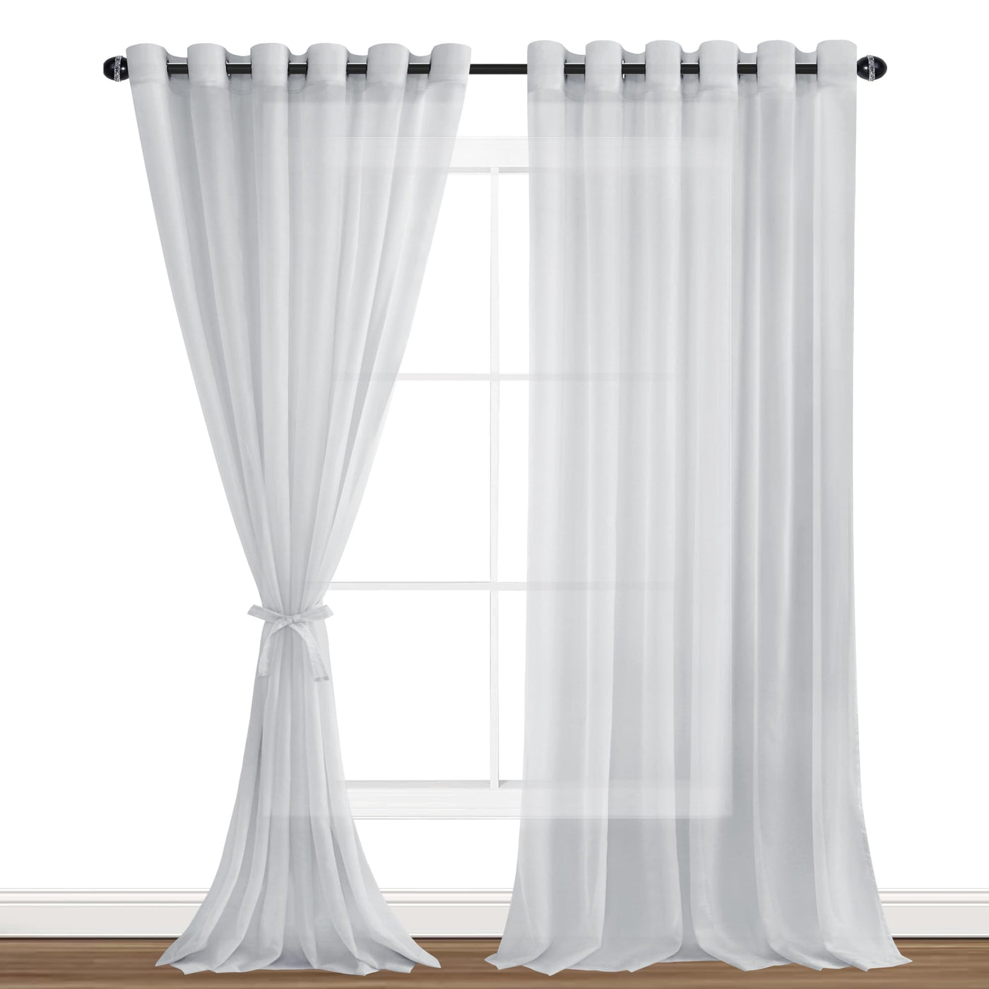 Hiasan Sheer Curtains 90 Inches Long With Tiebacks, Light Filtering Breathable Voile Drape Lightweight Grommet Window Curtains For Bedroom, Living Room, Grey, W70 X L90, Set Of 2 Panels