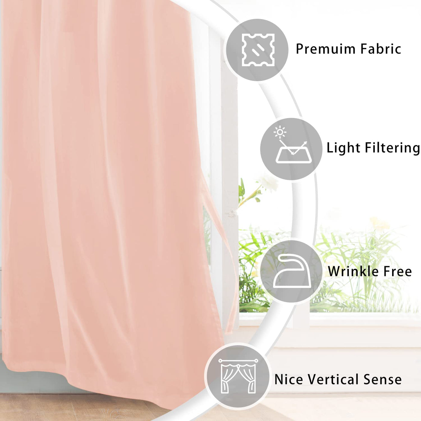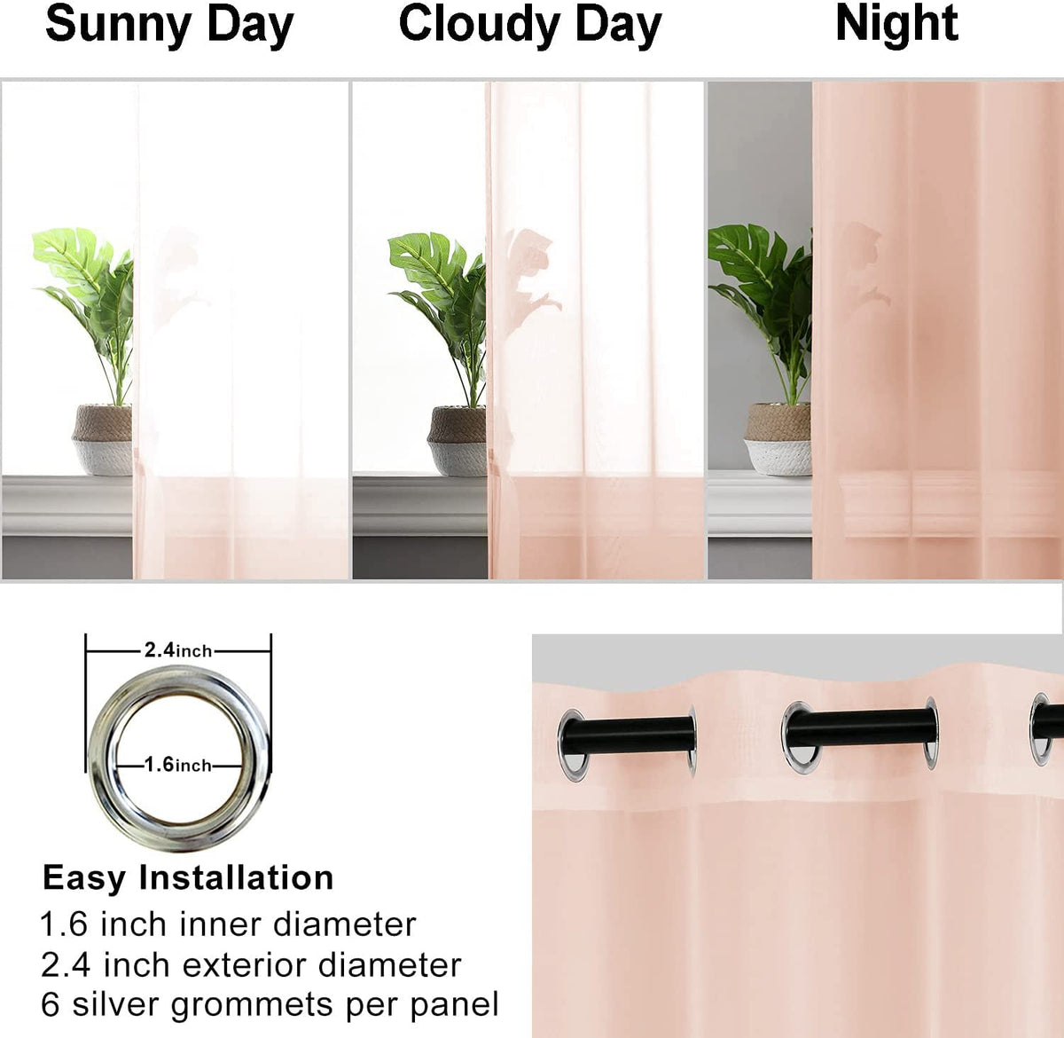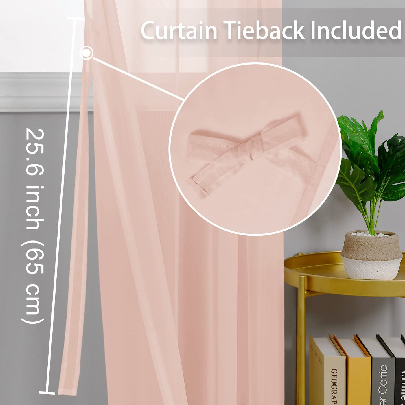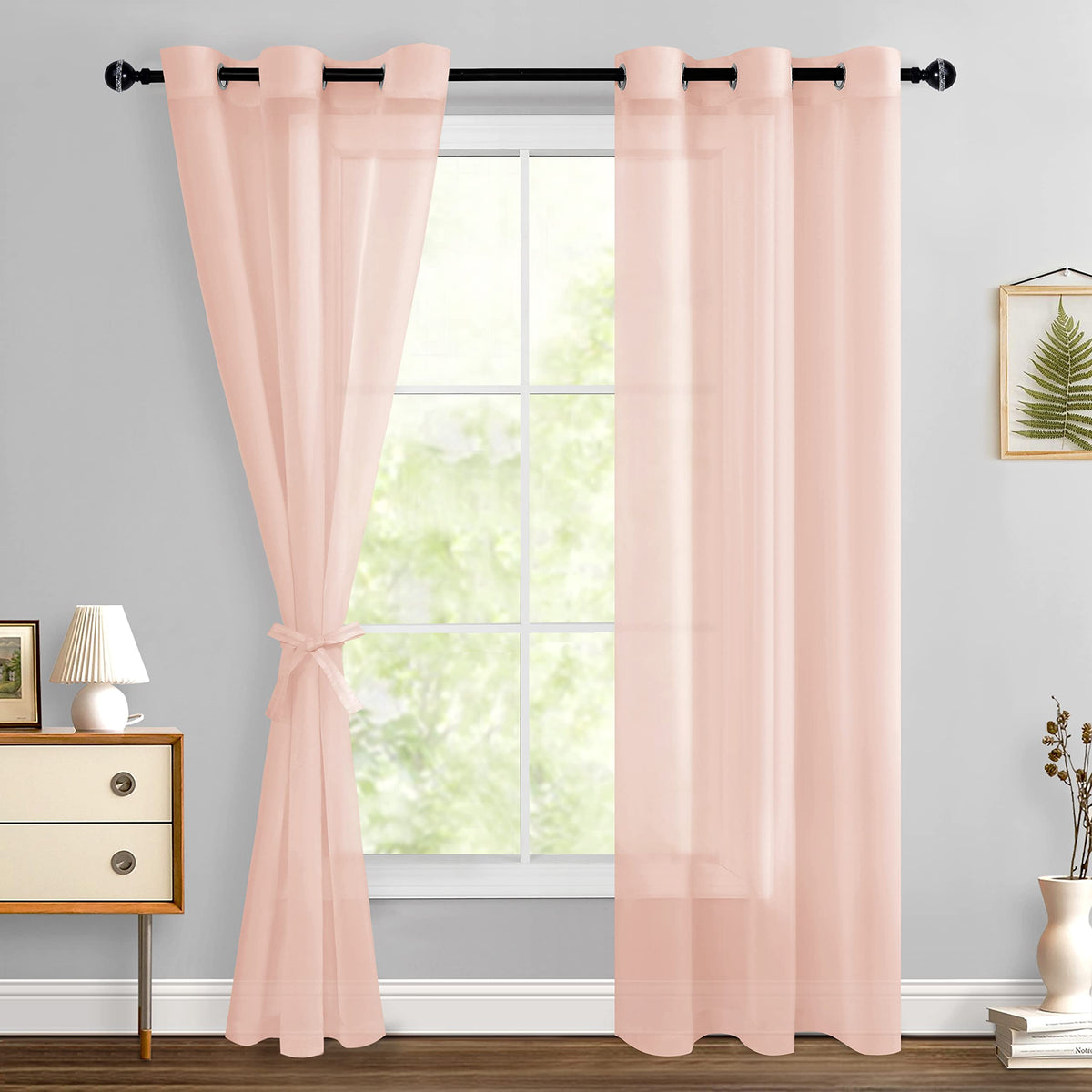Hiasan Sheer Curtains For Bedroom With Tiebacks, Light Filtering Breathable Voile Drapes Lightweight Grommet Window Curtains For Living Room, Sliding Glass Door, Blush Pink, W42 X L90, 2 Panels