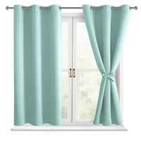 Hiasan Short Blackout Curtains For Bedroom - Thermal Insulated & Energy Saving Window Curtains For Living Room, 2 Drape Panels Sewn With Tiebacks, Aqua, 42 X 45 Inch