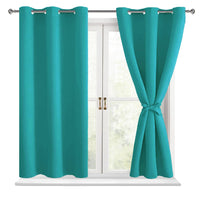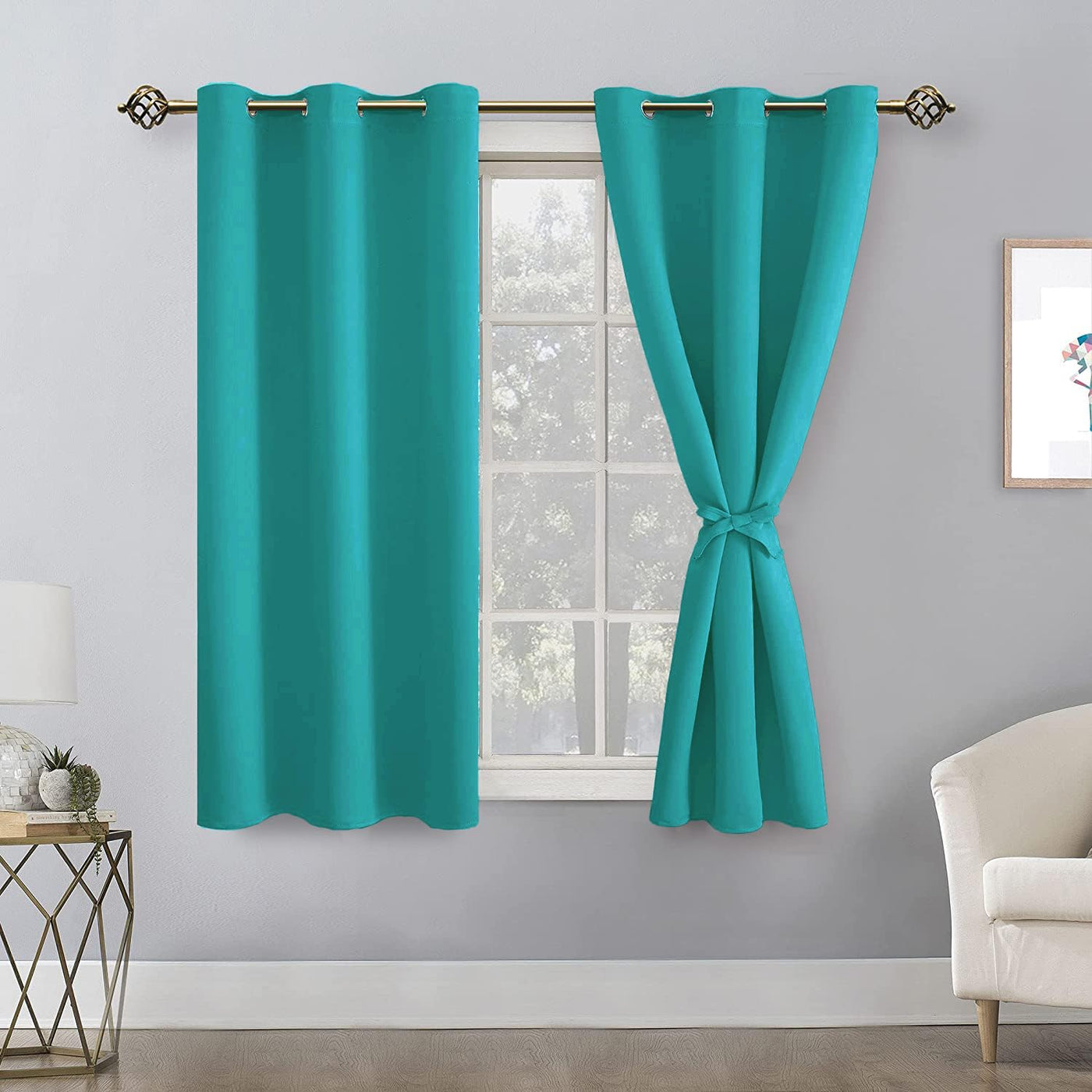 Hiasan Short Blackout Curtains For Bedroom - Thermal Insulated & Energy Saving Window Curtains For Living Room, 2 Drape Panels Sewn With Tiebacks, Peacock Teal, 38 X 45 Inch