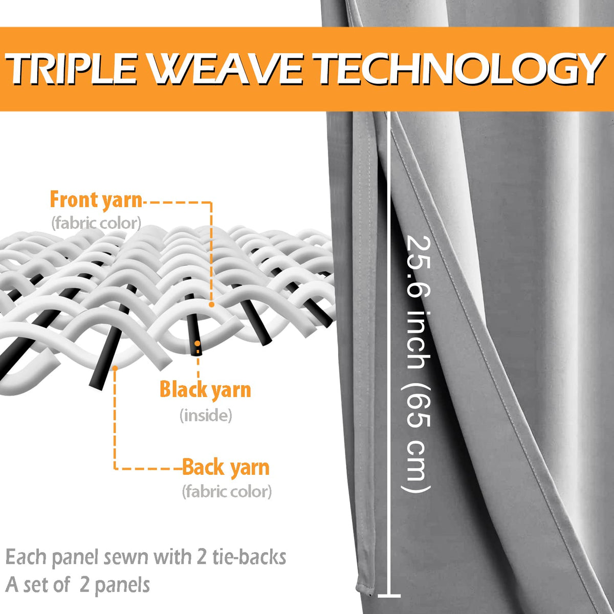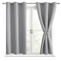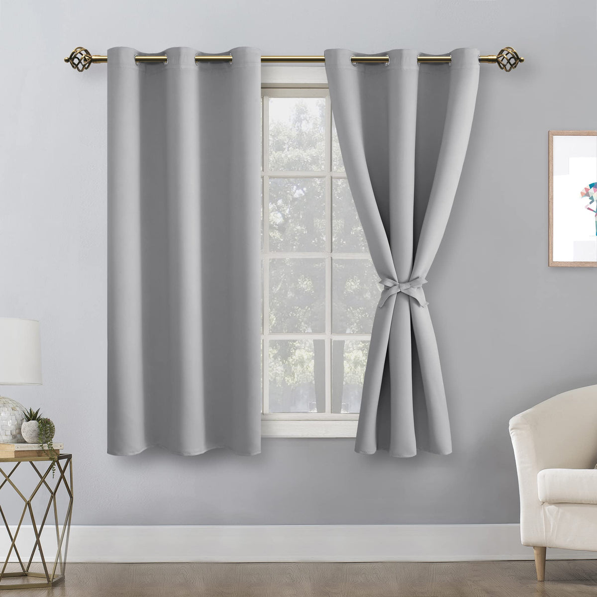 Hiasan Short Blackout Curtains For Bedroom - Thermal Insulated & Light Blocking Window Curtains For Living Room, 2 Drape Panels Sewn With Tiebacks, Silver Grey, 38 X 45 Inch