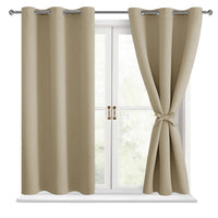 Hiasan Short Blackout Curtains For Bedroom - Thermal Insulated & Light Blocking Window Curtains For Living Room, 2 Drape Panels Sewn With Tiebacks, Taupe, 38 X 45 Inch