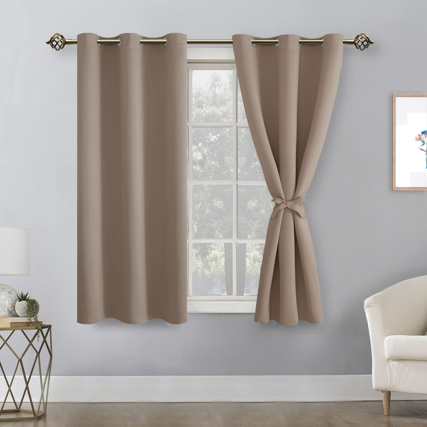 Hiasan Short Blackout Curtains For Bedroom - Thermal Insulated & Light Blocking Window Curtains For Living Room/Kids Room, 2 Drape Panels Sewn With Tiebacks, Camel, 42 X 45 Inch