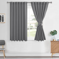 Hiasan Short Grey Curtains 45 Inch Long, Light Blocking Thermal Insulated Rod Pocket & Back Tab Blackout Drapes Sewn With Tiebac