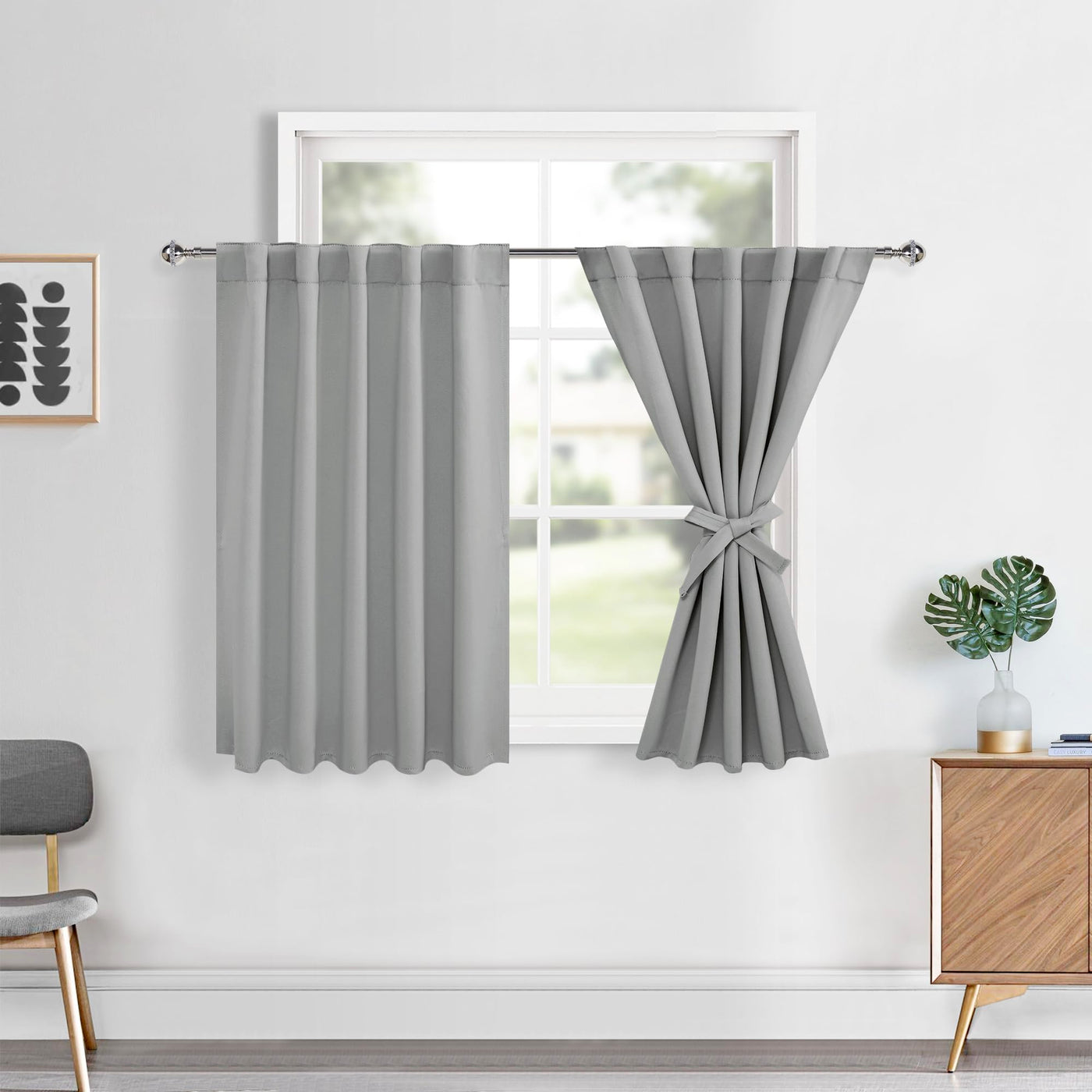 Hiasan Short Sliver Grey Blackout Curtains 36 Inch Long, Bathroom Small Window Curtains Rod Pocket & Back Tab Thermal Insulated