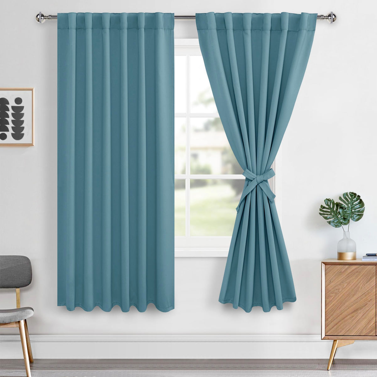 Hiasan Stone Blue Curtains 63 Inch Long Sewn With Tiebacks, Rod Pocket & Back Tab Blackout Thermal Insulated Kids Drapes, Room D
