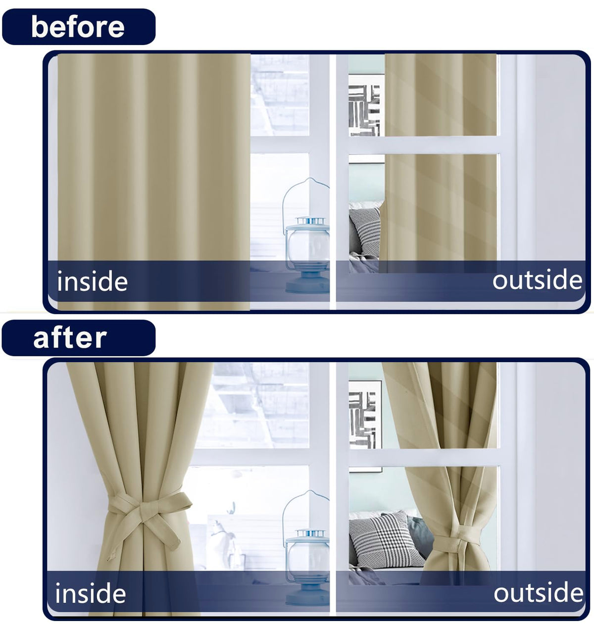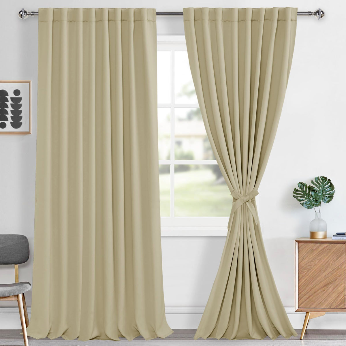 Hiasan Rod Pocket And Back Tab Blackout Curtains With 2 Tiebacks, Help Keep Your Curtains Open With Minimal Effort. You Can Reduce Extra&Nbsp;Expenses&Nbsp;For Your Window Treatments. To Tie The Two Ends Of The Tiebacks Together And Then Adjust It According To The Thickness Of Your Curtain. These Heavy Blackout Curtains Offer A Contemporary Solution For Holding Drapes Without The Need For Tools Or Drilling Holes Into Trim Or Walls.&Nbsp;Features: Block Out 85%-256% Sunlight And Uv Rays Thermal Insulated And Noise Reducing Thick And Privacy Protection Available In Various Sizes And Colors The Darker The Color, The Better The Blackout Performance&Nbsp;Easy Care: Machine Wash In Cold Water Tumble Dry On Low Low Heat Ironing Dont Bleach