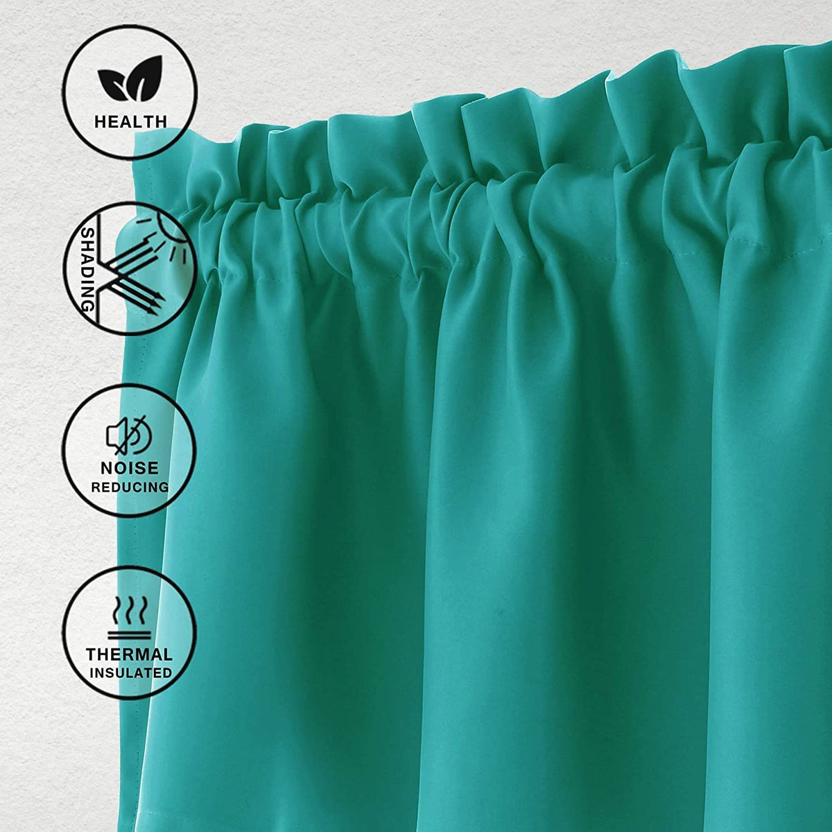 Hiasan Teal Valance Curtains For Kitchen - Blackout Thermal Insulated Rod Pocket Window Valances, 60 X 18 Inches Length, 1 Panel