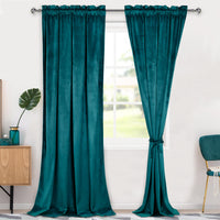 Hiasan Teal Velvet Curtains 96 Inches-Blackout Thermal Insulated Solid Soft Curtains For Bedroom Living Room Rod Pocket Room Dar