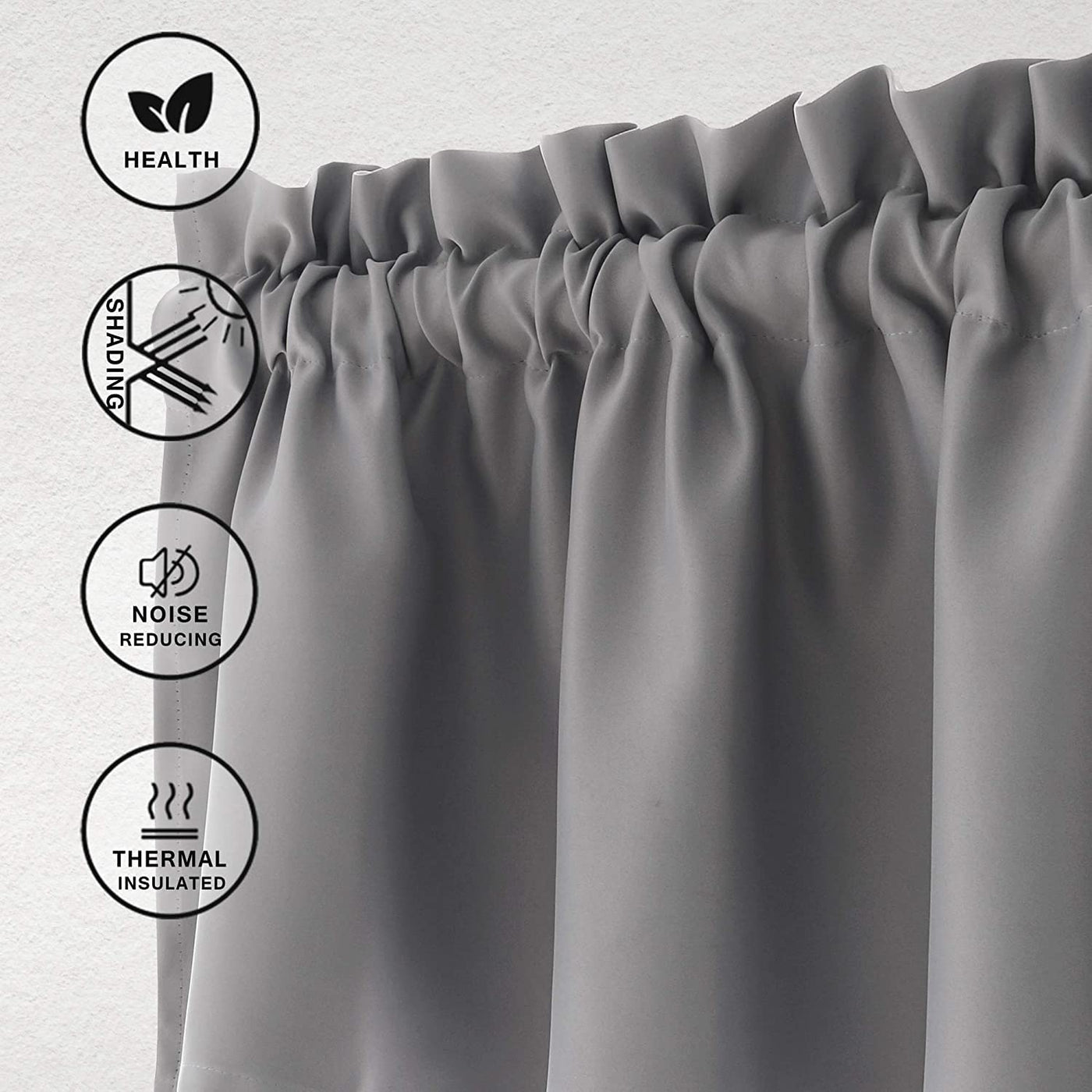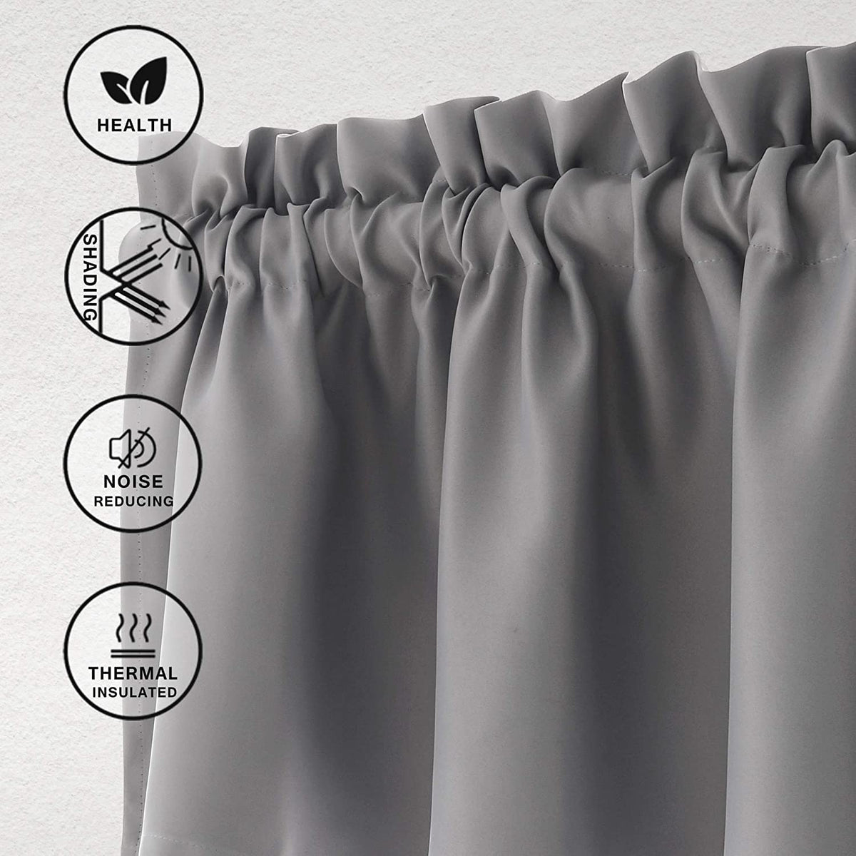 Hiasan Valance Curtains For Kitchen Blackout Thermal Insulated Solid Window Curtain Valance, Grey, 42 X 12 Inches, 1 Panel