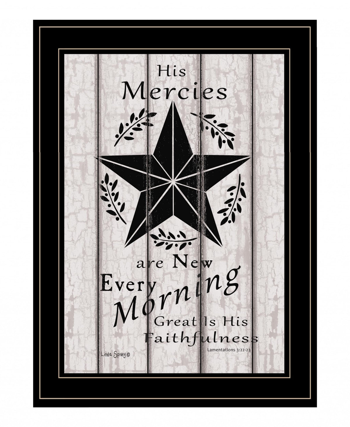 Add some Christmas cheer to your space with this his mercies are new every morning 3 black framed print wall art. This print is a visual artistic expression that allows you to decorate your space in style. Reproduced for you on wood, this hanging accent will be a trendy walls and fashionable way to dress your in a rustic and modern farmhouse vibe. Adding this hanging wall to your space to make your room feel more expensive. to create a focal point in the room with this wonderful wall decor option. 21' H x 15' W x 1' D