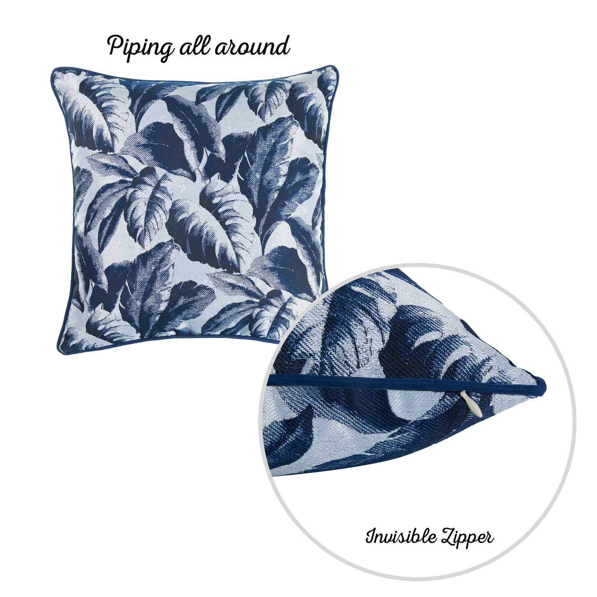 Couch Pillow Covers - 17'x 17' Jacquard Tropical Sky Leaf Decorative Throw Pillow Cover Easily update and refresh your home with luxurious and beautiful Jacquard Tropical Sky Leaf Decorative Throw Pillow Cover. Instant upgrade of any space is possible with pillow covers made with durable jacquard fabric. Distinct and beautiful colors will add hue and style to any room. Binding around the edges gives a luxurious feel and distinctive look. Hidden zipper closure provides a clean and seamless look all the way around. 100% Polyester jacquard with luxurious hand feel. Our fabrics are dyed with OEKO-TEX? Standard 100 certified products without any harmful substances. 17' X 17' (43cm X 43cm). Hidden zipper closure, binding all around the edges. Beautiful distinctive color selection. Machine Wash Cold Separately, Gently Cycle Only, No Bleach, Do Not Tumble Dry, Iron medium and from the reverse side