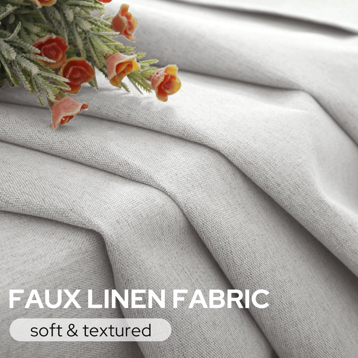 Q: What materials are used in these curtains?A: These curtains are made from 280GSM nano linen fabric, which is soft, drapey, and free of chemical odors, providing a modern aesthetic for your living space.