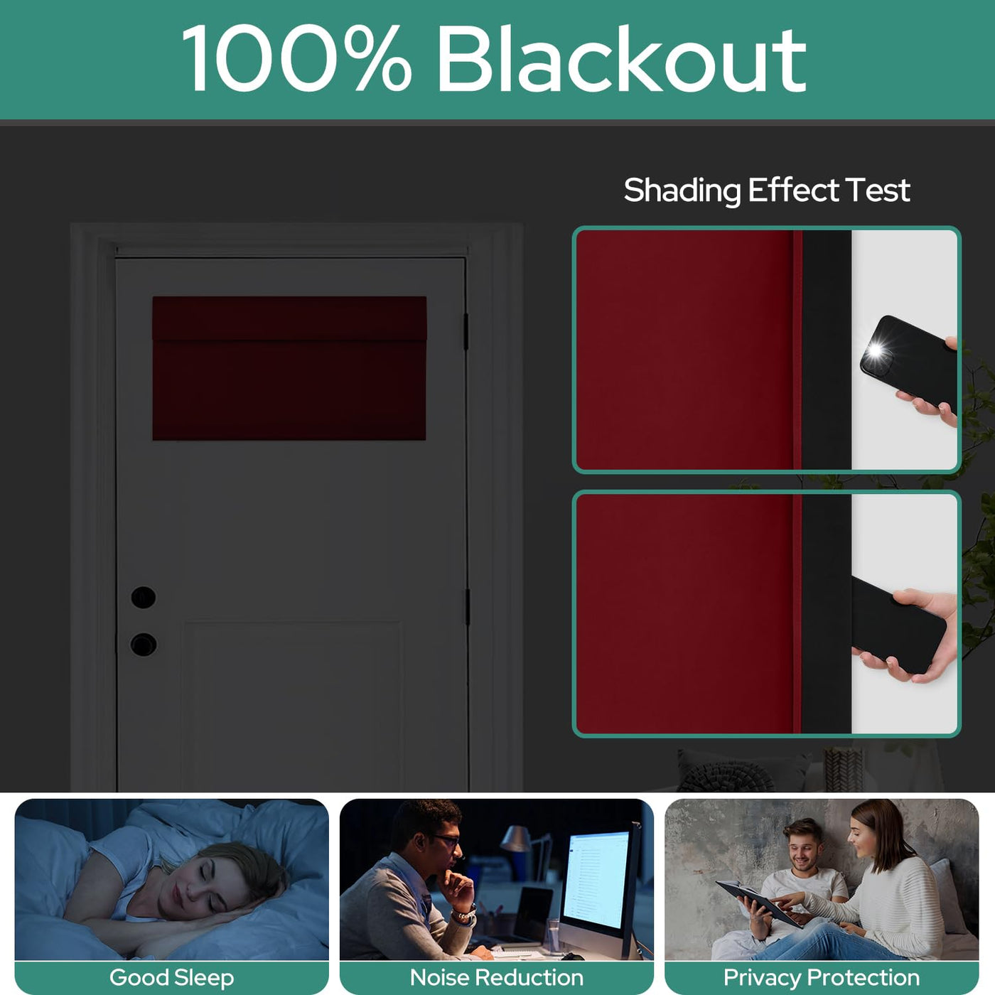 Homeideas 100% Blackout French Door Curtains,Privacy Small Door Curtains For Window, 26 X 12 Inch Shades For Front Window, Thermal Insulated Covering, 1 Panel, Burgundy