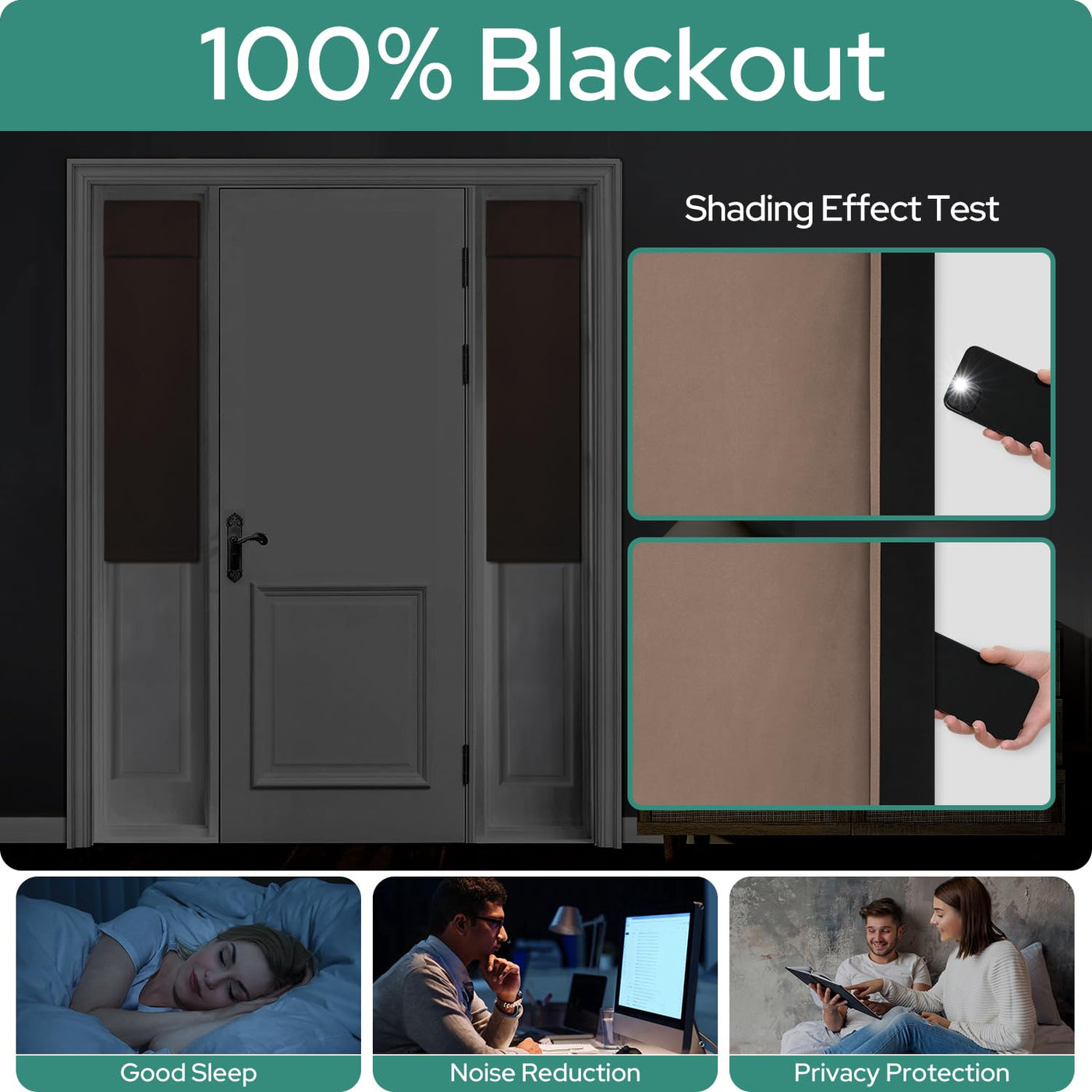 Homeideas 100% Blackout Sidelight Curtains For Front Door, Side Door Window Curtains And Small Window, Thermal Insulated Covering, 1 Panel, W12 X L54 Inch, Coffee
