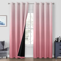 Homeideas 100% Pink Blackout Curtains For Bedroom, Ombre Room Darkening Curtains For Living Room 52 X 84 Inches Long Grommet Gra