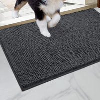 Homeideas Absorbent Chenille Door Mat Indoor, 20“X32”, Dirt Trapper Machine Washable Non Slip Throw Rugs For Entryway, Entrance, Mud Room, Thick Welcome Doormat, Dark Gray