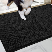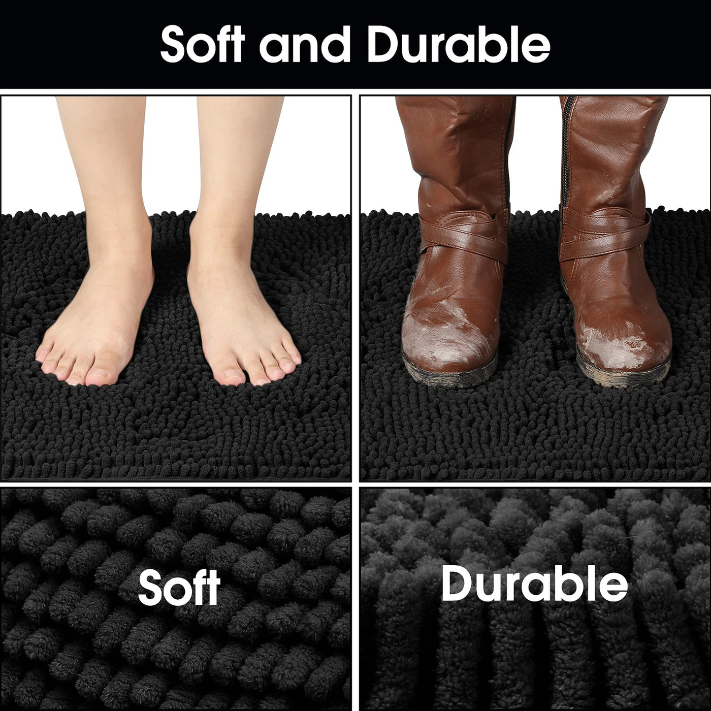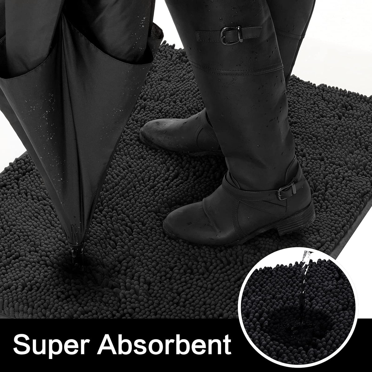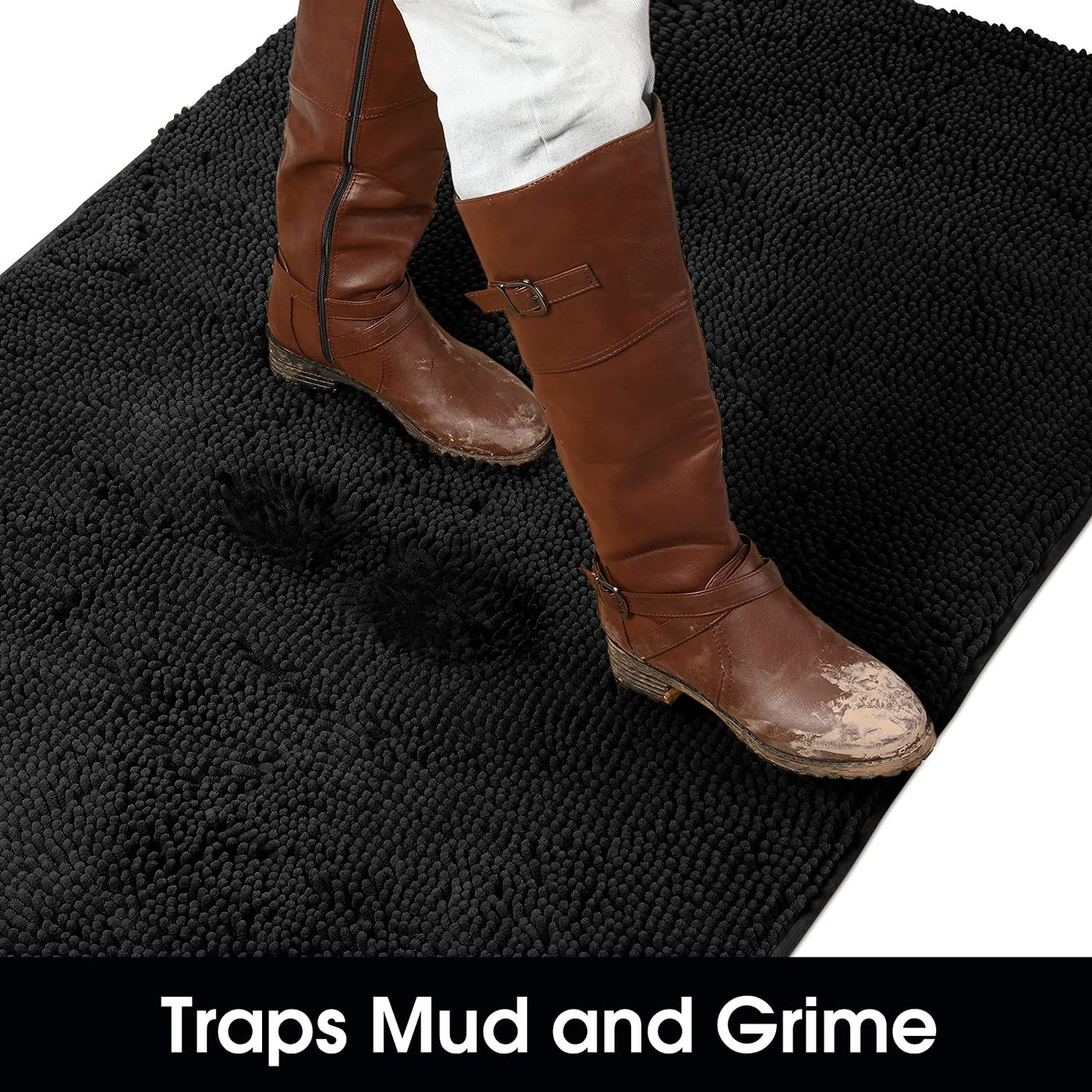 Homeideas Absorbent Chenille Door Mat Indoor, 24“X36”, Dirt Trapper Machine Washable Non Slip Throw Rugs For Entryway, Entrance, Mud Room, Thick Welcome Doormat, Black