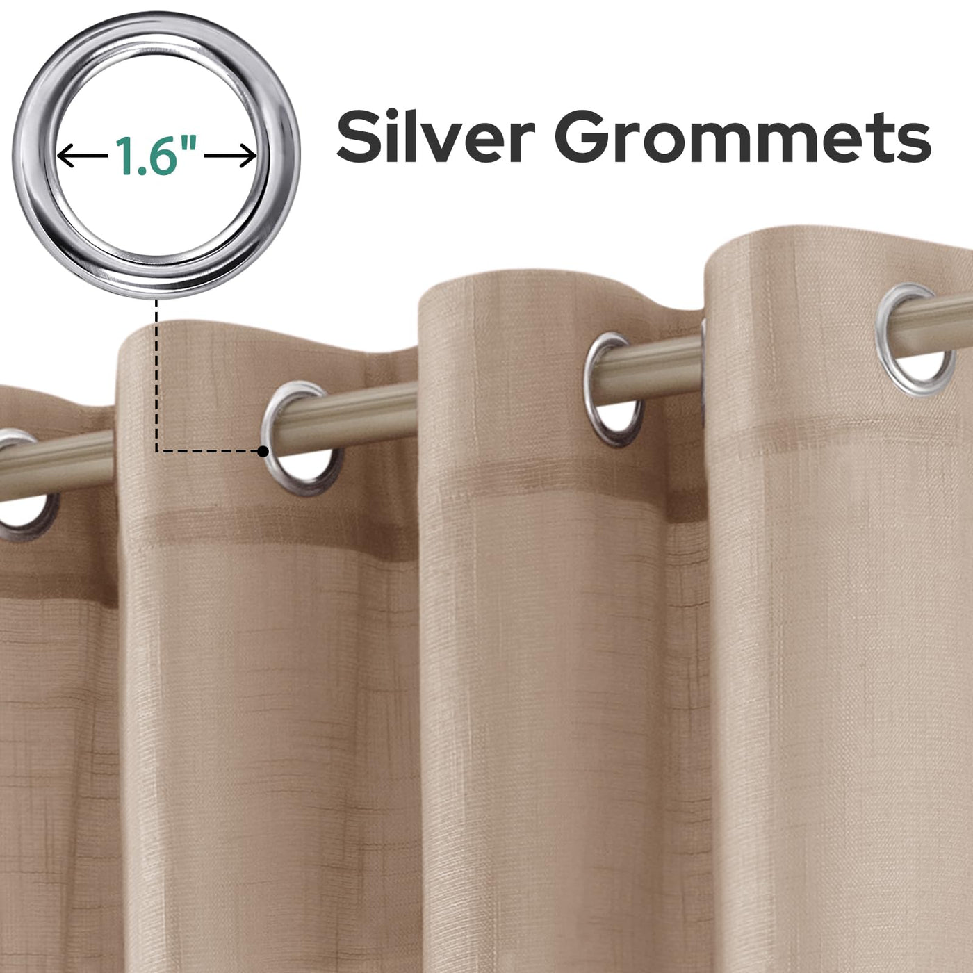 Q: Are the curtains easy to install?A: Yes, each panel features 8 silver stainless steel grommets, making them easy to install and remove from most standard window rods.