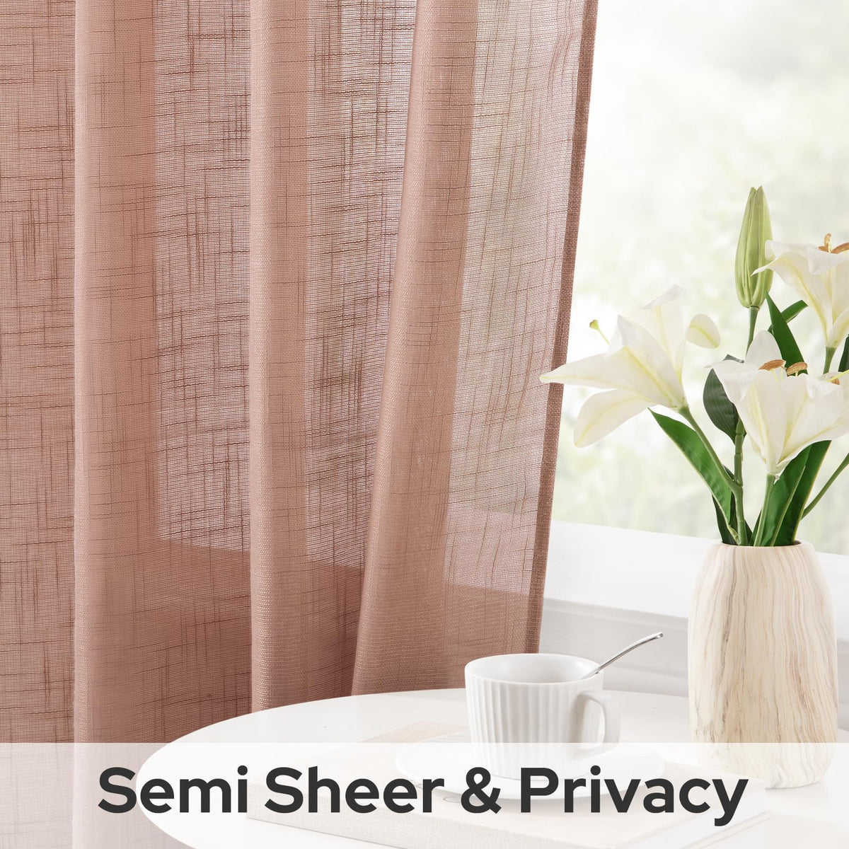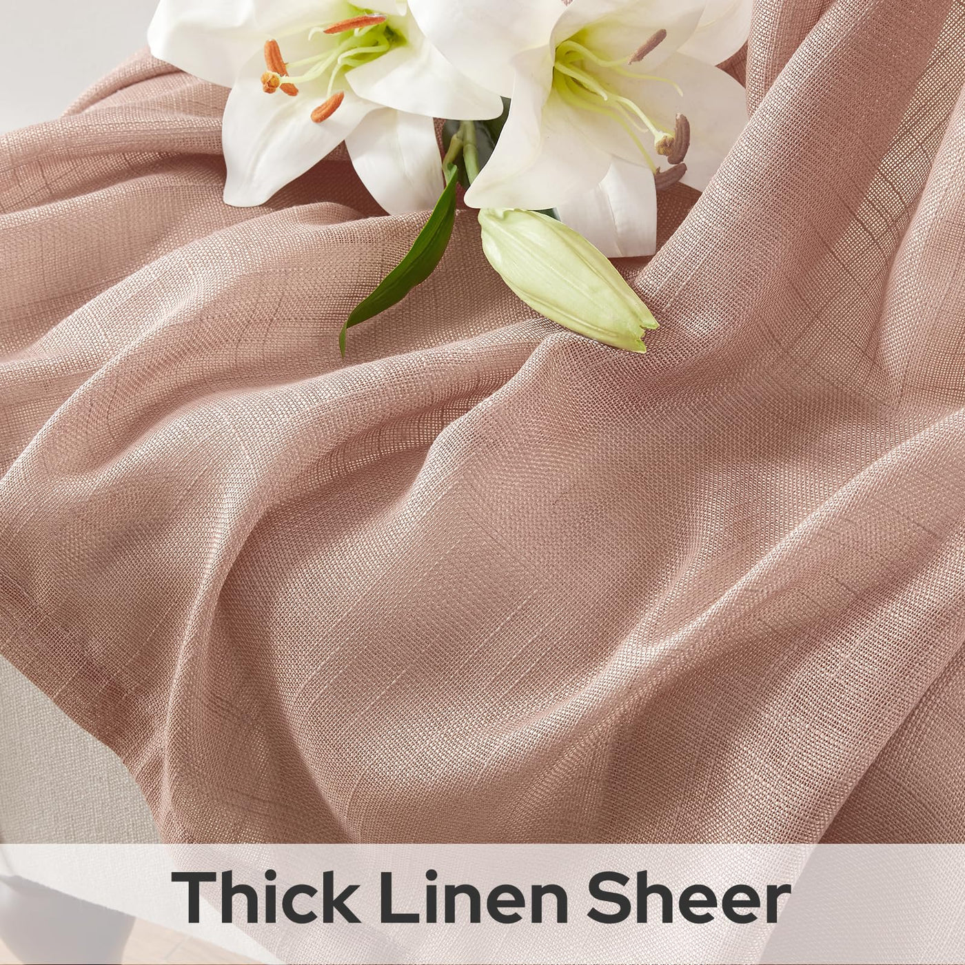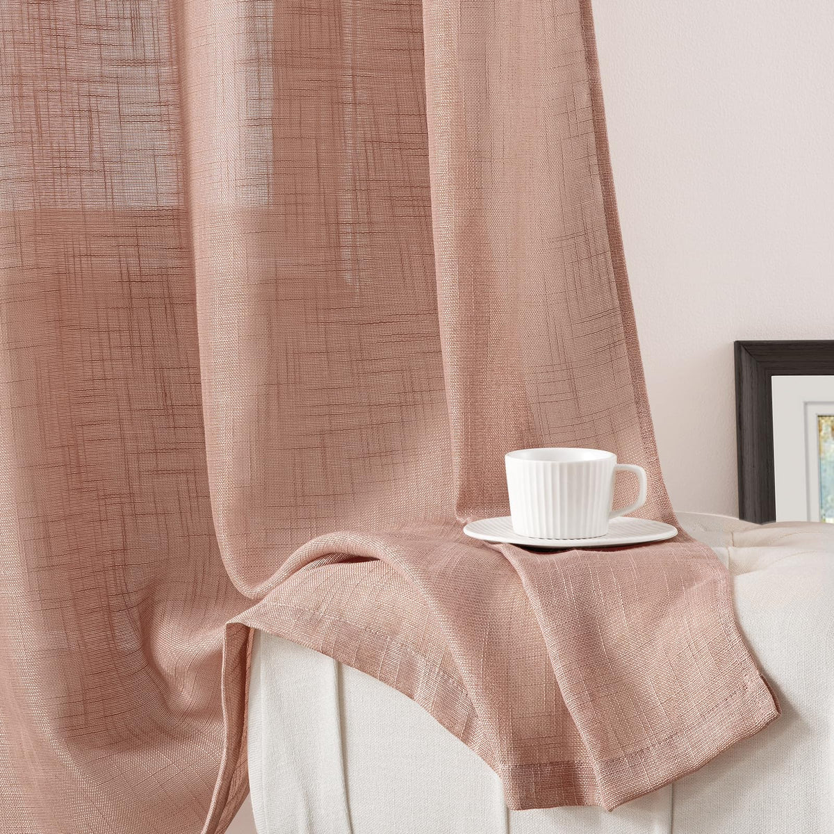 Homeideas Blush Pink Linen Sheer Curtains 108 Inches Long 2 Panels Textured Dusty Blush Semi Sheer Curtains Farmhouse Curtains S