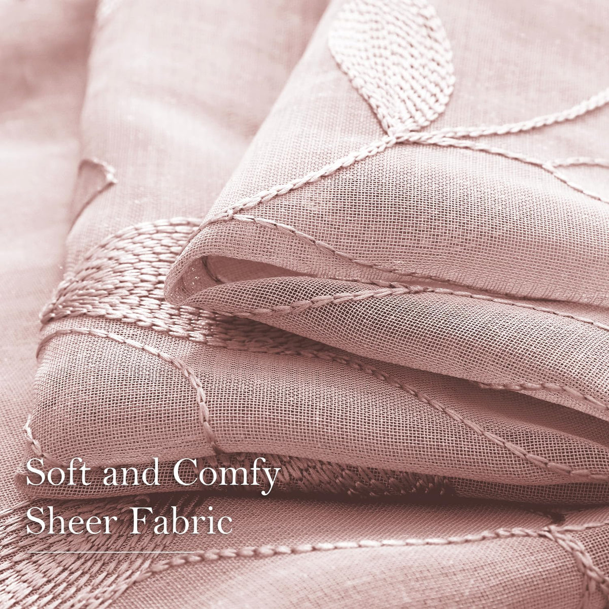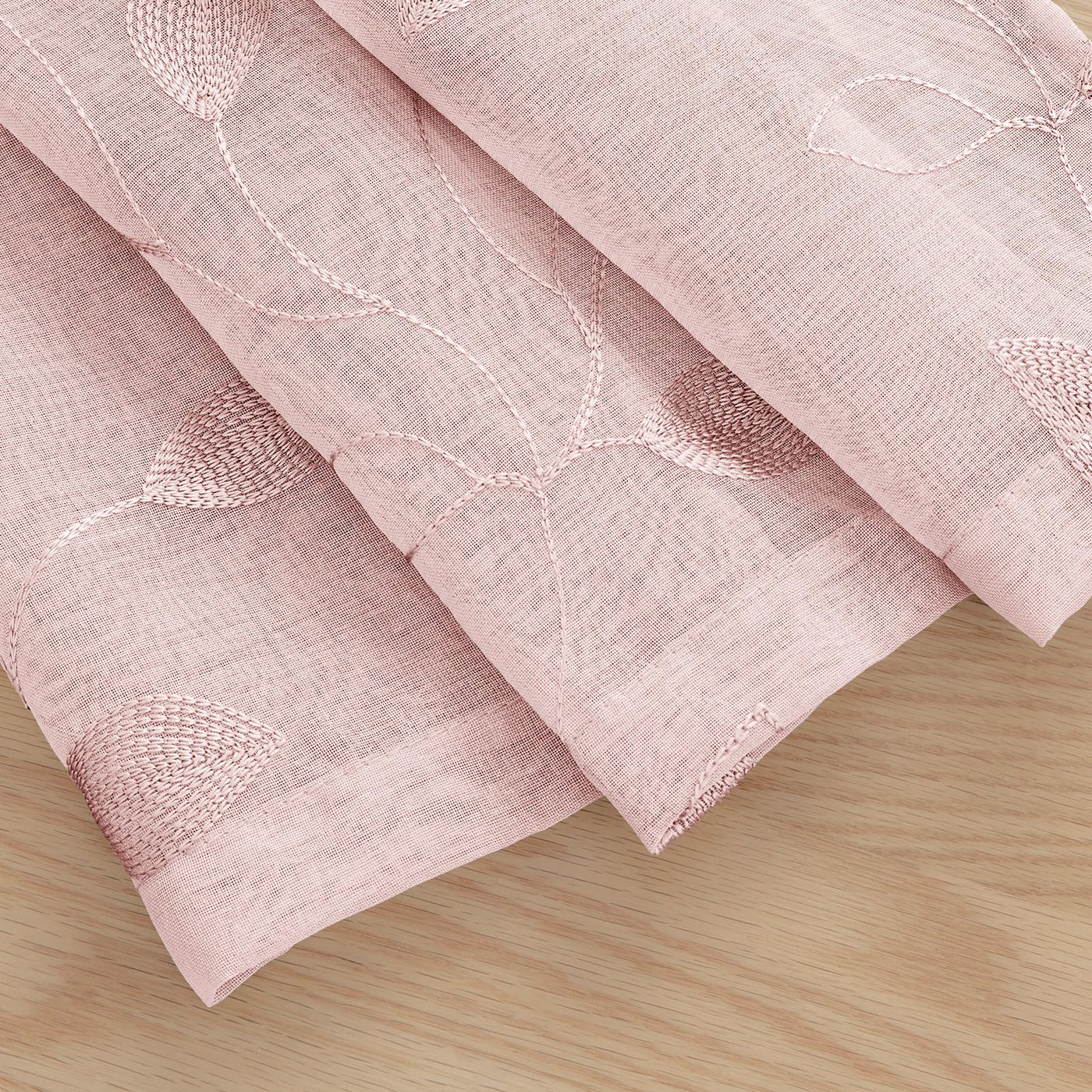 Homeideas Blush Pink Sheer Kitchen Curtains 52 X 54 Inch Length 2 Panels Embroidered Leaf Pattern Short Curtains For Bedroom Half/Small Bathroom Window Rod Pocket Tiers