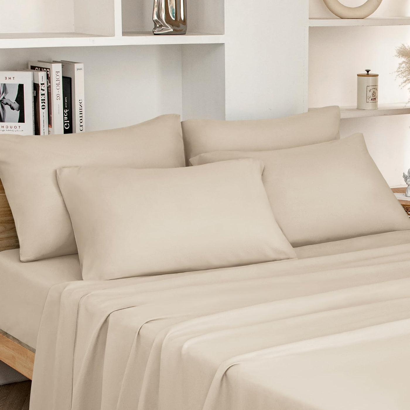 Homeideas Full Size Bed Sheets - 6 Piece Set (Cream) - Extra Soft Brushed Microfiber 1800 Bedding Sheets, Deep Pocket, Wrinkle &