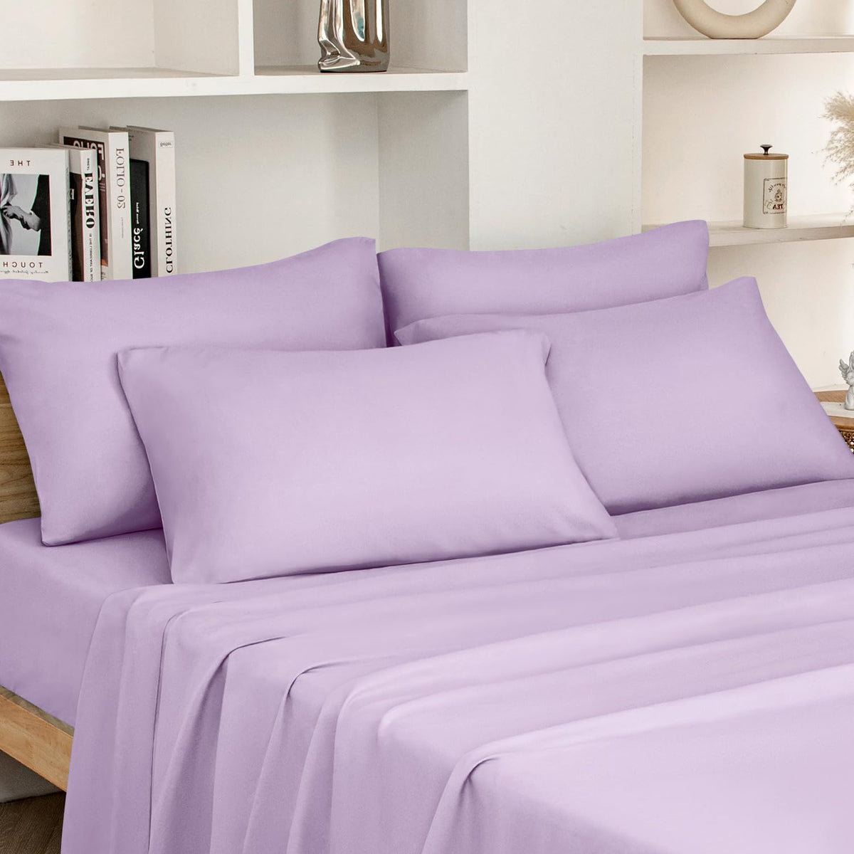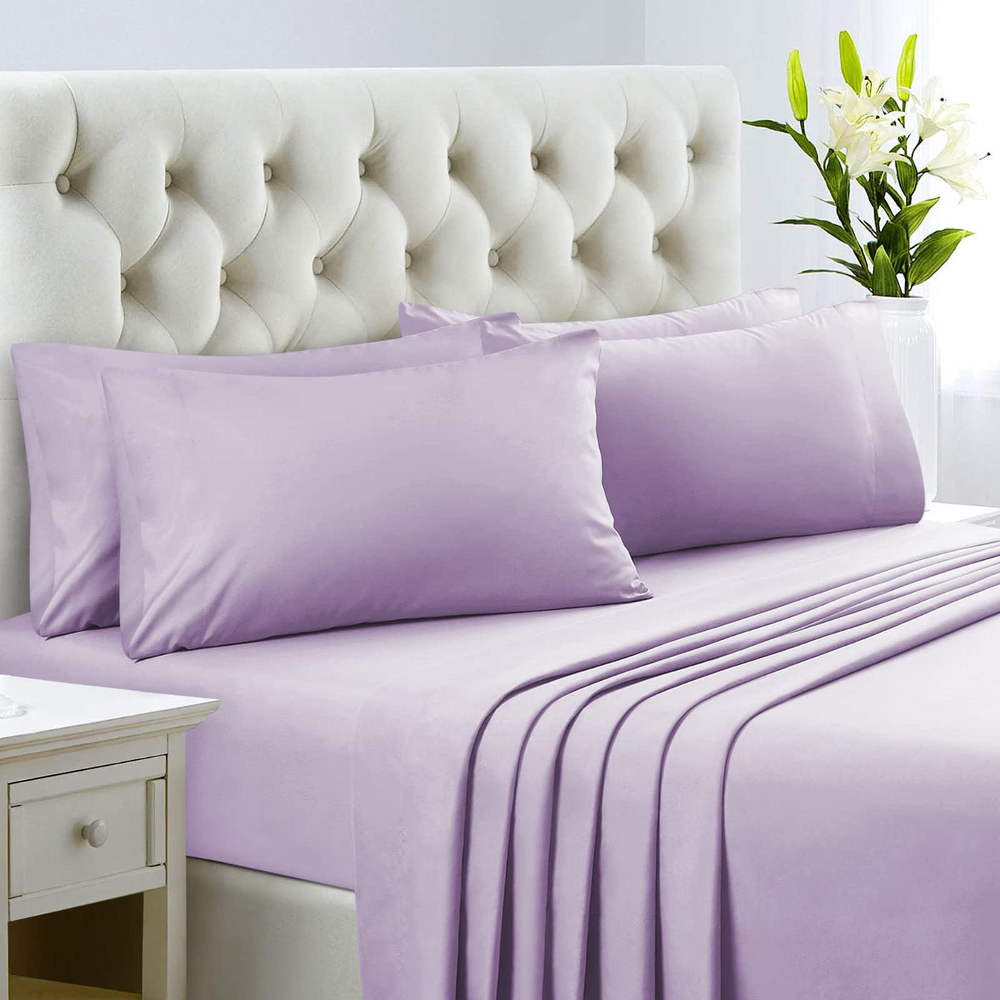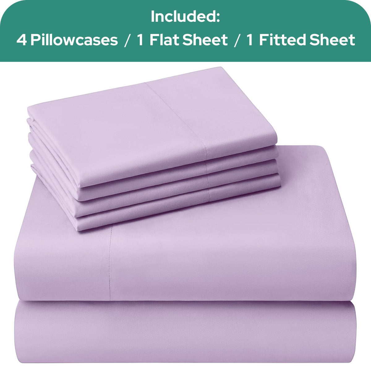 Homeideas King Size Bed Sheets - 6 Piece Set (Lavender) - Extra Soft Brushed Microfiber 1800 Bedding Sheets, Deep Pocket, Wrinkle & Fade Free