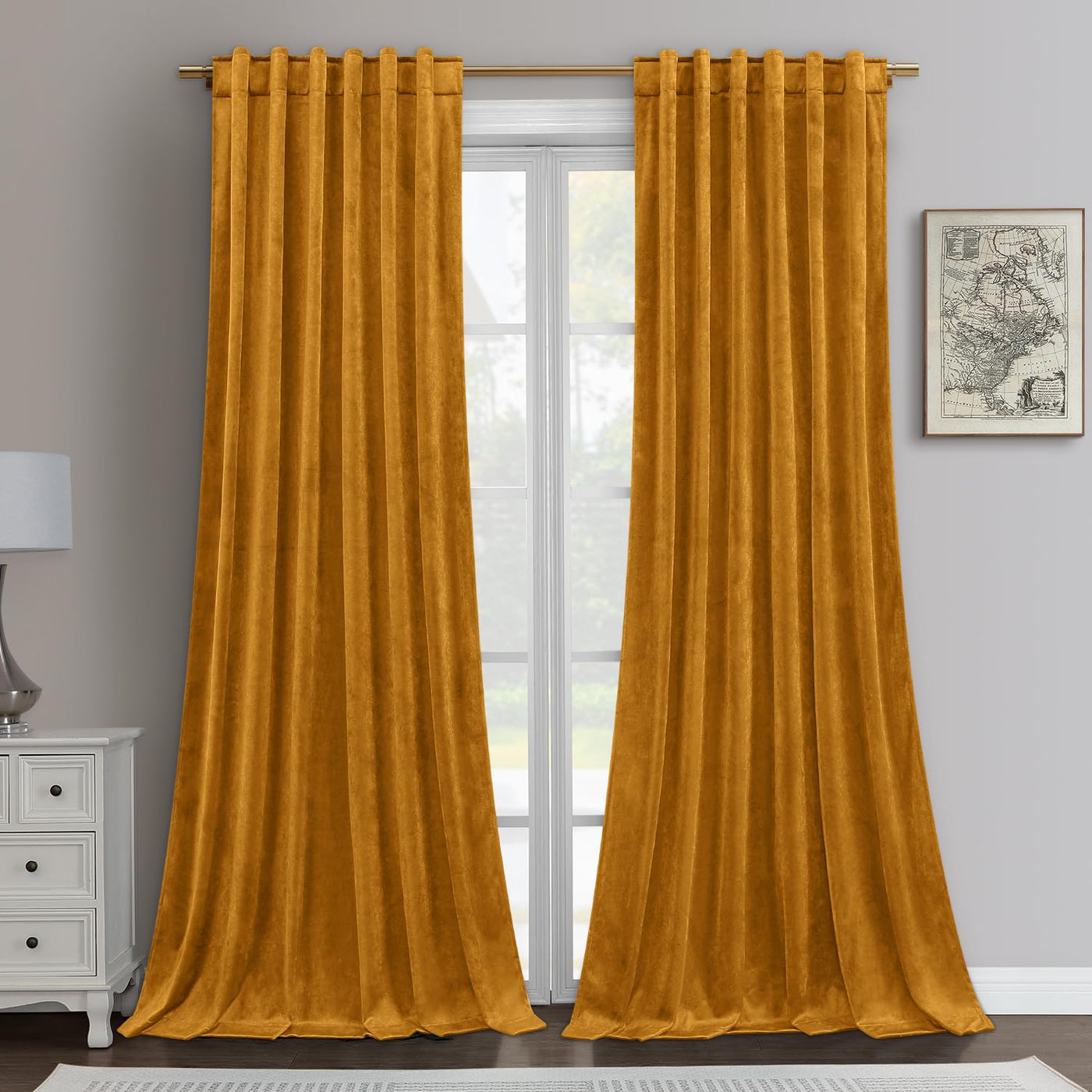 Homeideas Mustard Yellow Velvet Curtains 84 Inches Long 2 Panels Thick And Luxury Room Darkening Curtains Halloween Curtains/Dra