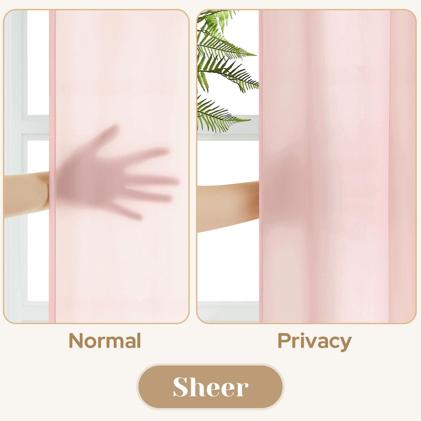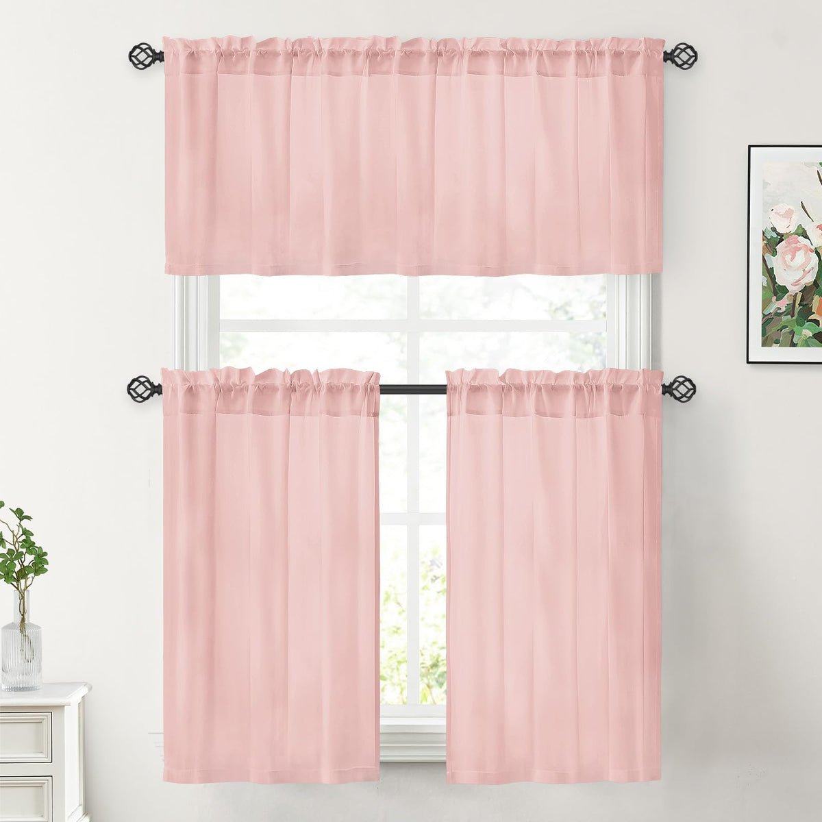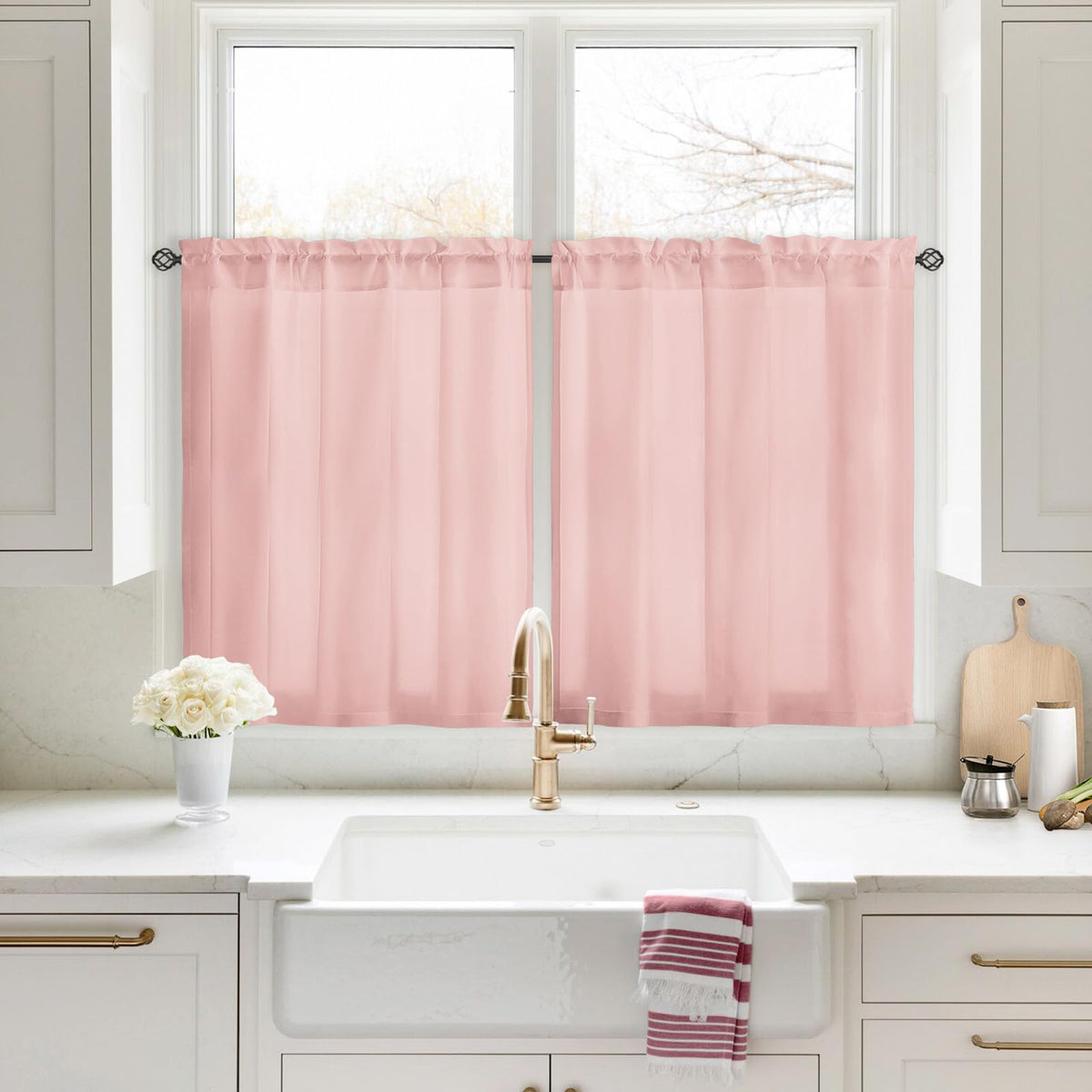 Homeideas Non-See-Through Blush Pink Privacy Sheer Kitchen Curtains 30 X 36 Inches Long 2 Panels Short Sheer Curtains Light Filtering Bathroom Window Curtains Drapes For Bedroom Living Room