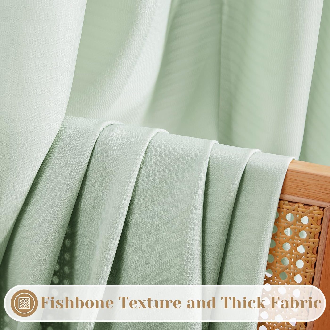 Homeideas Non-See-Through Sage Green Privacy Sheer Curtains 52 X 96 Inches Long 2 Panels Set, Fish Bone Pattern Semi Sheer Curta