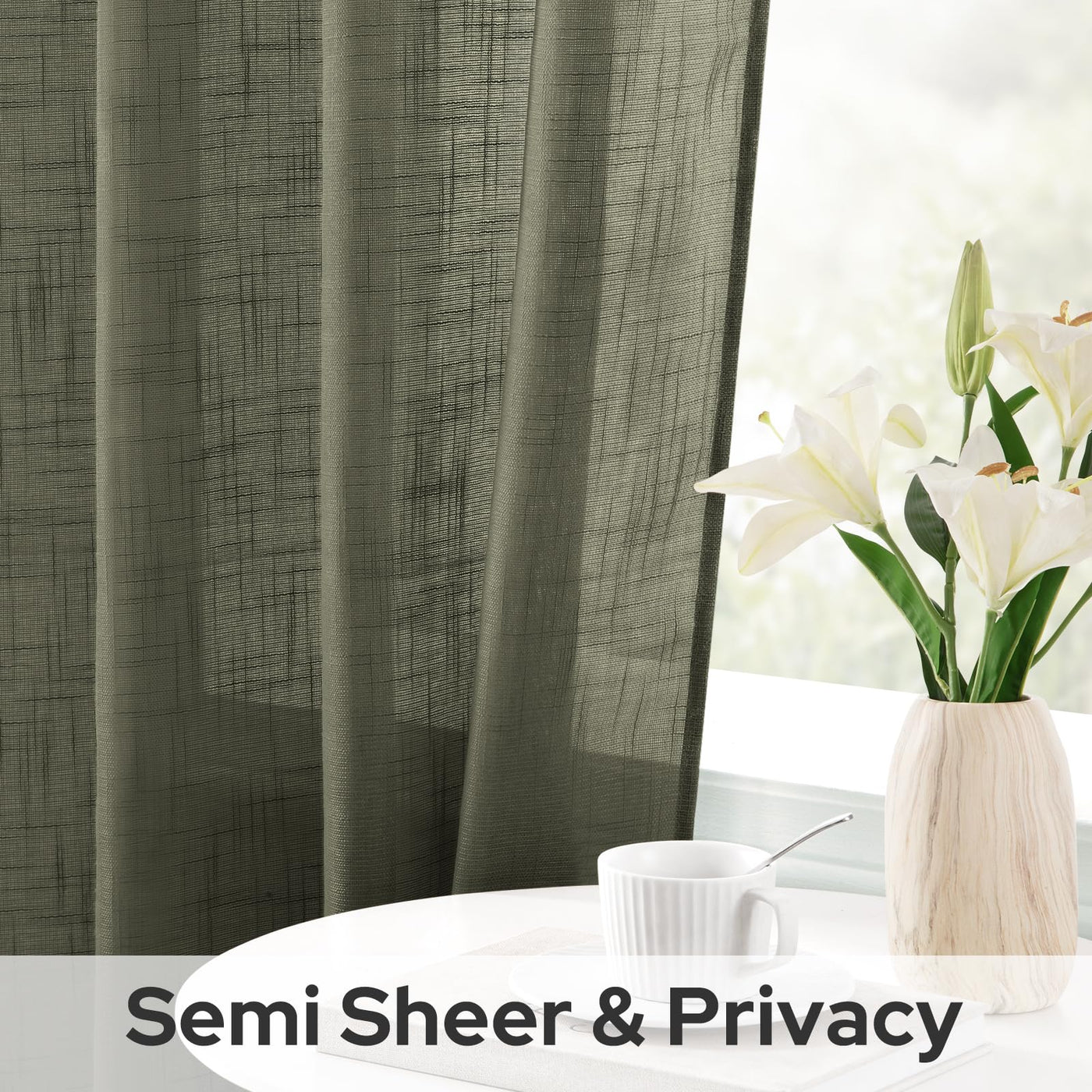 Homeideas Olive Green Linen Sheer Curtains 108 Inches Long 2 Panels Textured Semi Sheer Curtains Farmhouse Curtains Sheer Privac