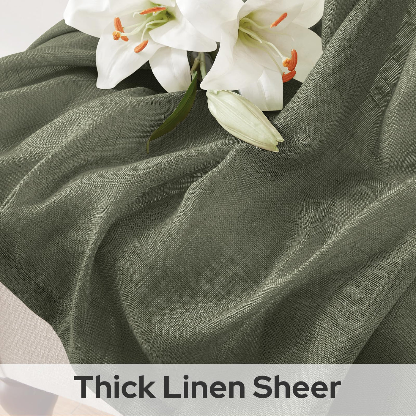 Homeideas Olive Green Linen Sheer Curtains 96 Inches Long 2 Panels Textured Semi Sheer Curtains Farmhouse Curtains Sheer Privacy