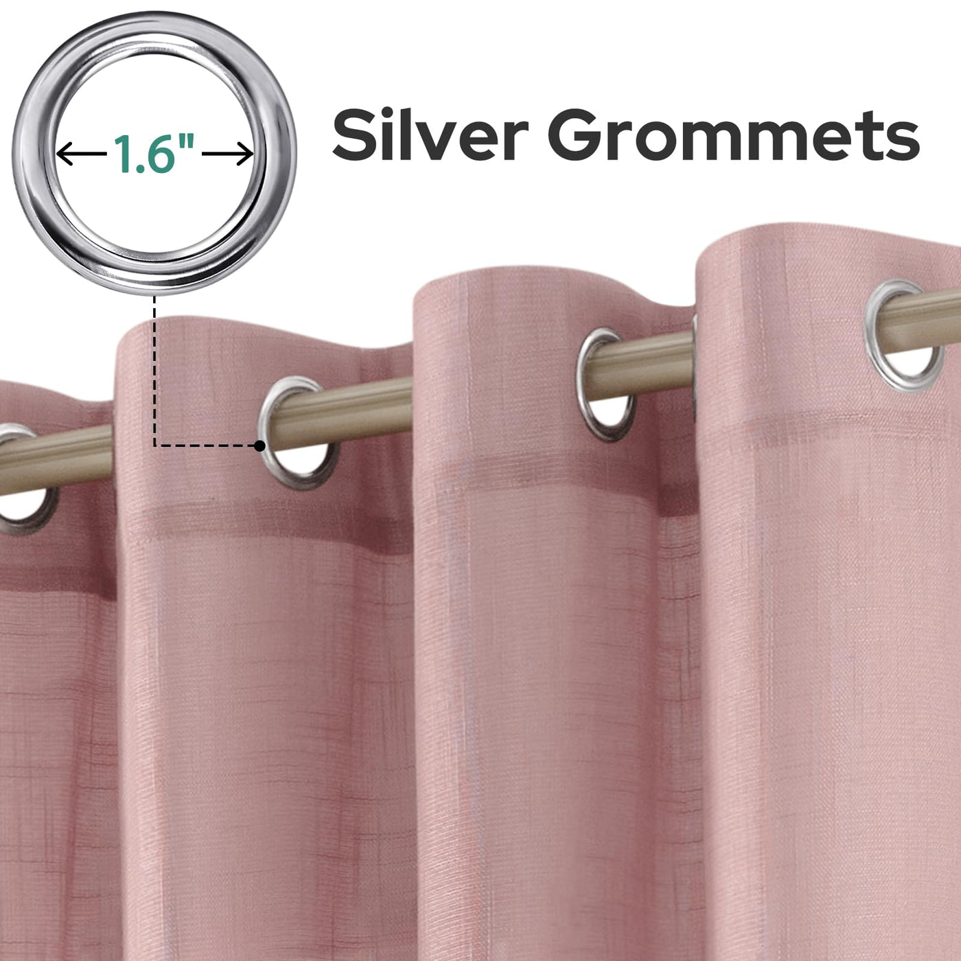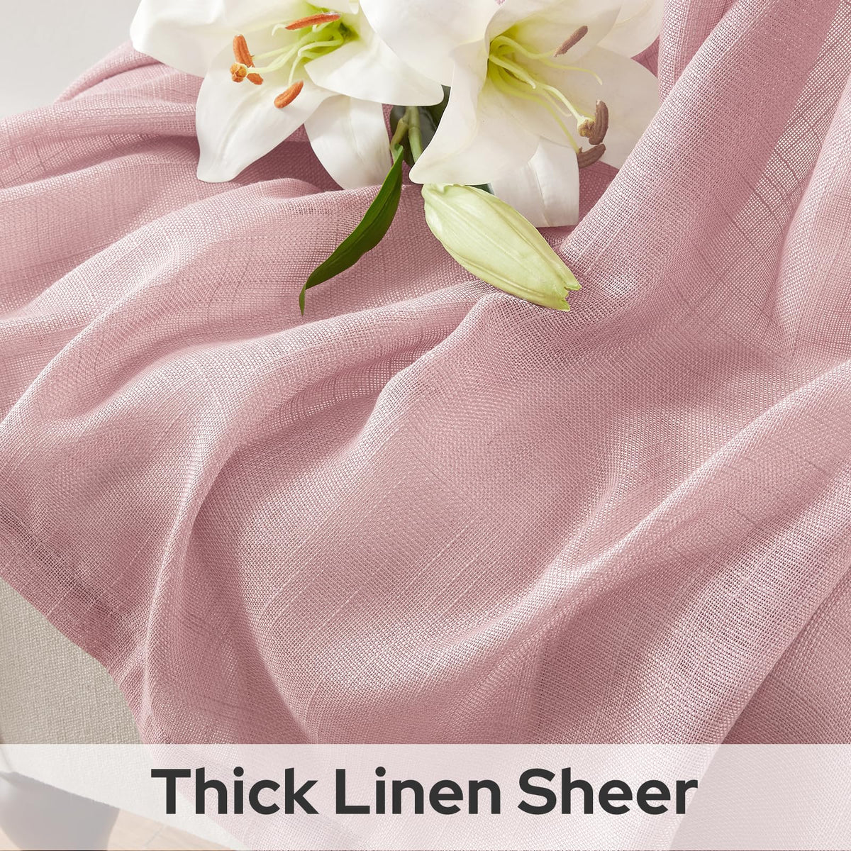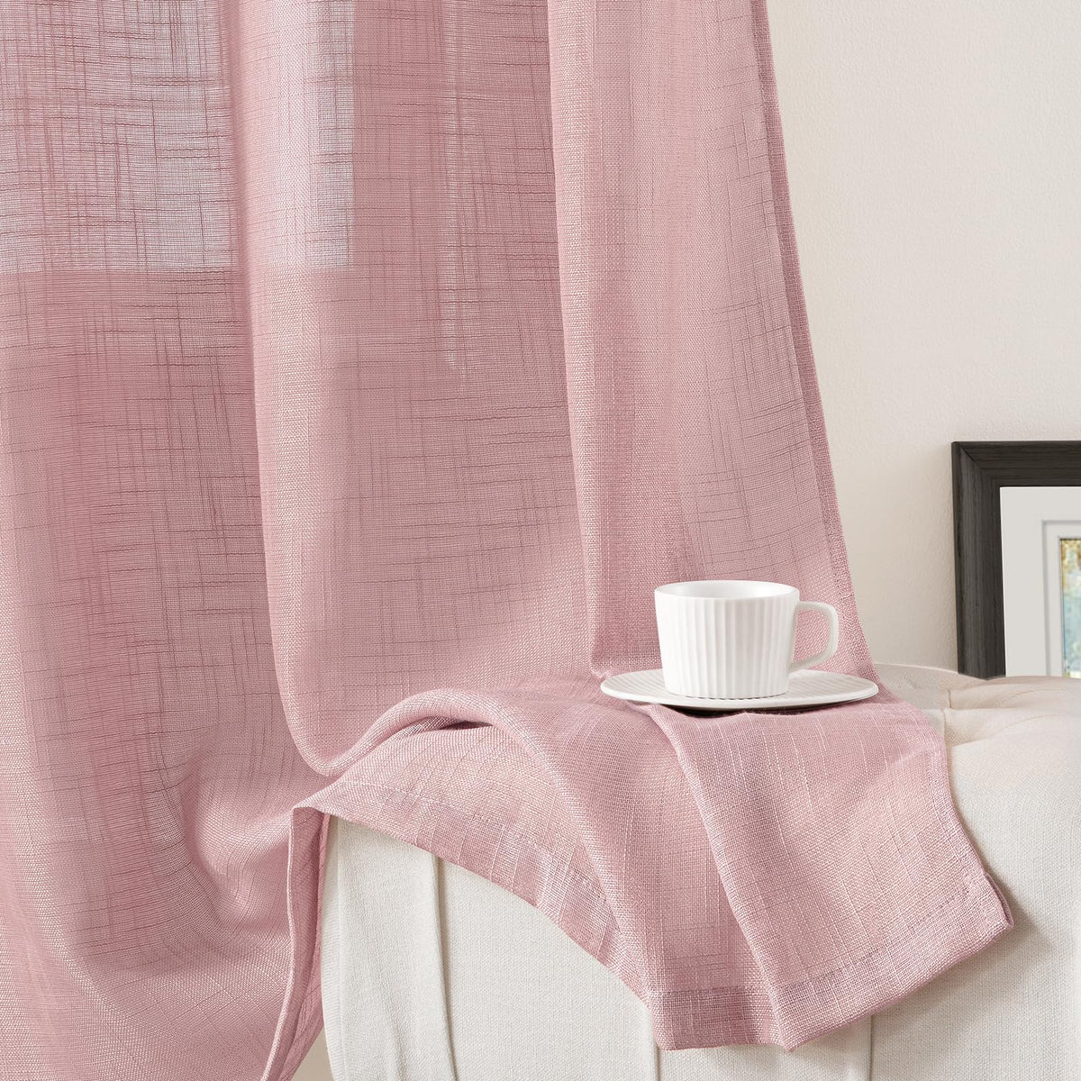 Q: What are the dimensions of the HOMEIDEAS Pink Linen Sheer Curtains?A: The HOMEIDEAS Pink Linen Sheer Curtains come in a pack of 2 panels, each measuring 52 inches wide by 108 inches long.