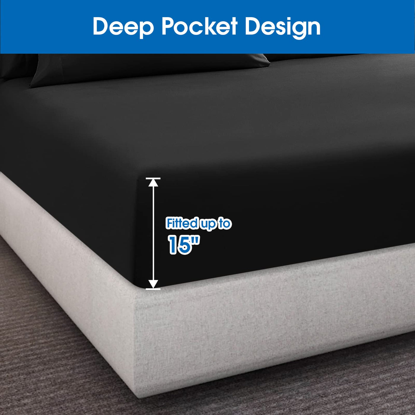 Homeideas Queen Size Bed Sheets - 4 Piece Set (Black) - Extra Soft Brushed Microfiber 1800 Bedding Sheets, Deep Pocket, Wrinkle & Fade Free