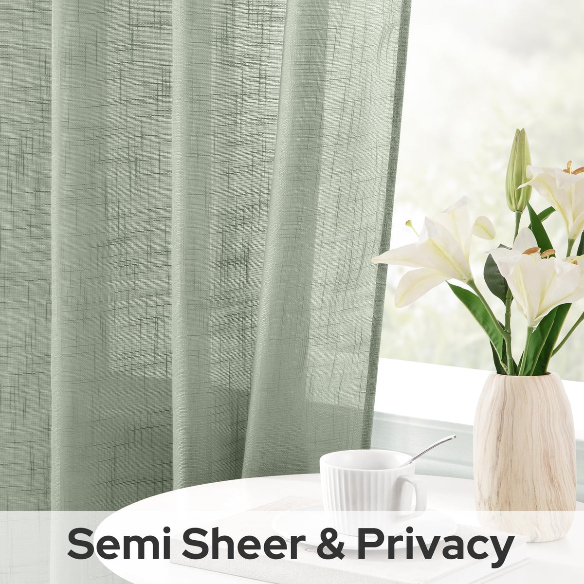 Homeideas Sage Green Linen Sheer Curtains 63 Inches Long 2 Panels Textured Semi Sheer Curtains Farmhouse Curtains Sheer Privacy