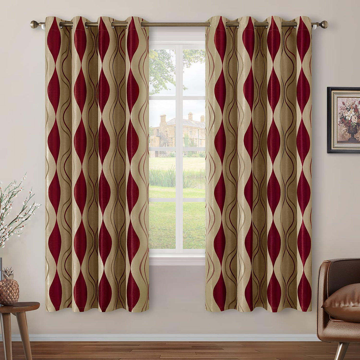 Homeideas Wave Room Darkening Curtains 52 X 63 Inch Length Burgundy And Beige Set Of 2 Panels Bedroom Curtains/Drapes,Jacquard G