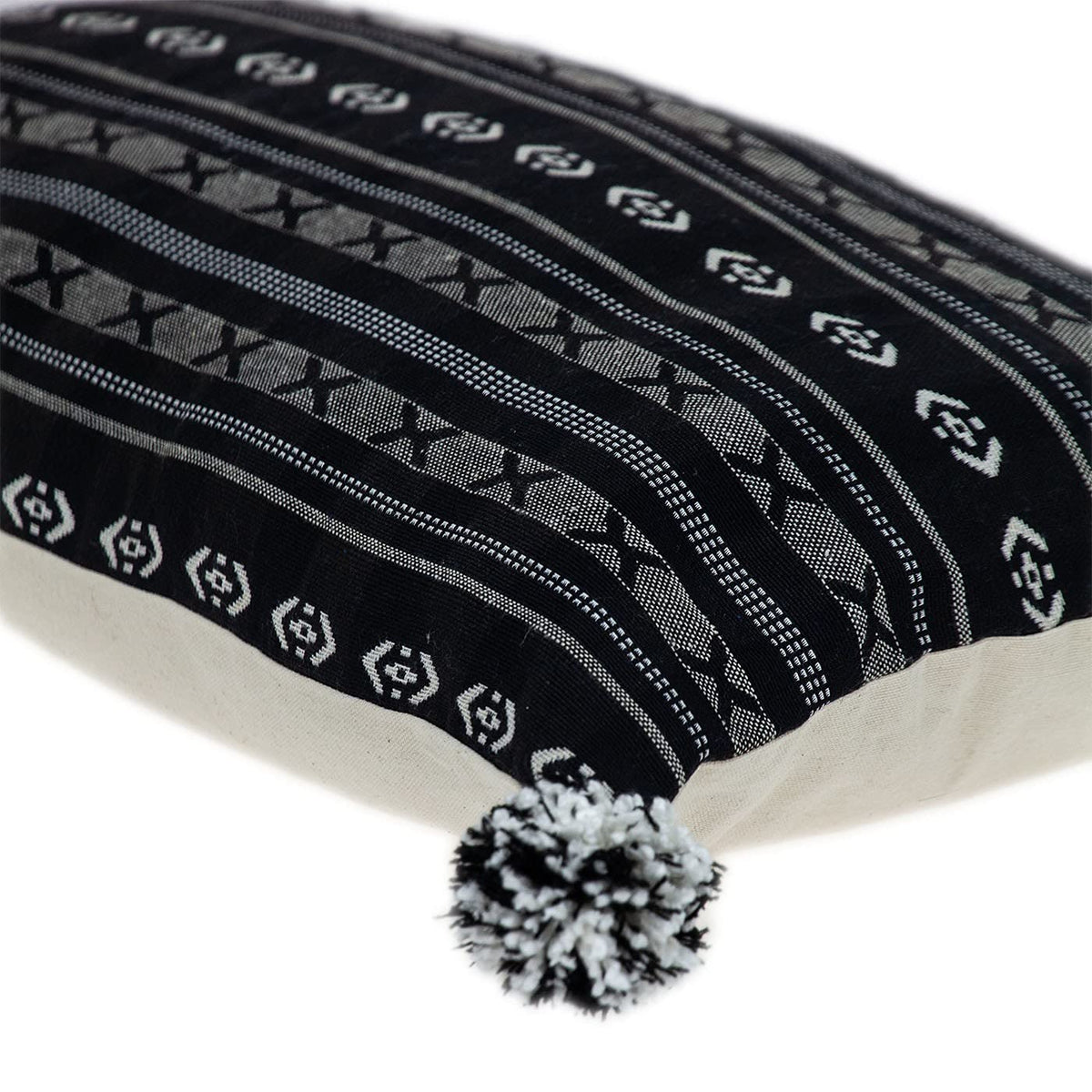 Black Gray X Pom Throw Pillow HomeRoots offers a wide variety of choices, in the tensofthousands and growing, in furniture, lighting and home decor products at extremely competitive pricing. If you would like a little bit of vintage touch to your otherwise contemporary furniture, this Black and Gray X Pom Throw Pillow will make the perfect choice. The whitecolored vintage pattern against the solid carbon black background makes the modern embroidery stand out, and the black and white pompoms on the four edges deliver a fusion look to the pillow. This rectangular 100% cotton pillow is supper soft, comfy, and stylish. 24 x 14 x 5. Specifications. Color Black Gray. Style Transitional. Shape Rectangular. Material Cotton. Country of Origin India. Dimension 24 H x 14 W x 5 D. Weight 3 lbs
