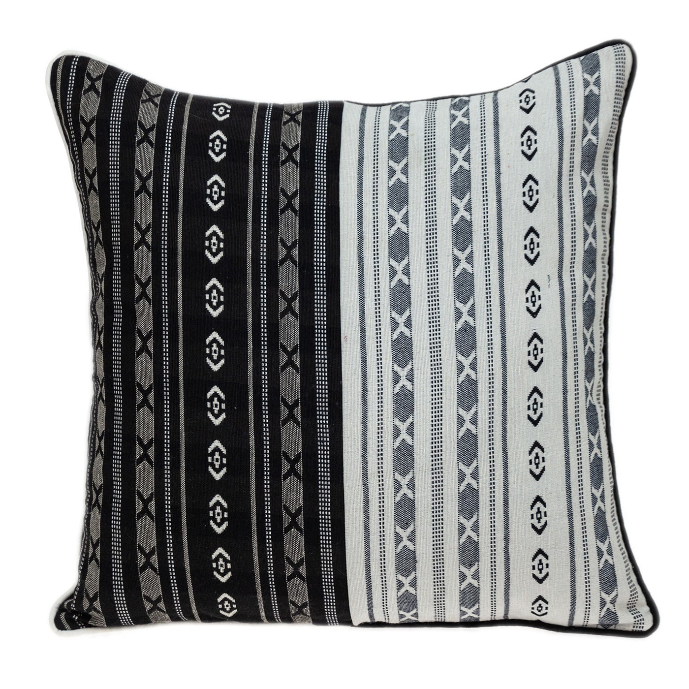 Black White Abstract Accent Pillow HomeRoots offers a wide variety of choices, in the tensofthousands and growing, in furniture, lighting and home decor products at extremely competitive pricing. A beautiful example of a trendy and versatile design, the Black and White Abstract Accent Pillow is the only thing you need to add a modern element to your living space. Made of 100% cotton, this pillow features an abstract design on a halfblack and halfwhite front, and the patterns on it deliver a rustic feel. There is a zipper closure on the back and the pillow needs to be dry cleaned or spot cleaned. 20 x 20 x 5. Specifications. Color Black White. Style Transitional. Shape Square. Material Cotton. Country of Origin India. Dimension 20 H x 20 W x 5 D. Weight 3 lbs