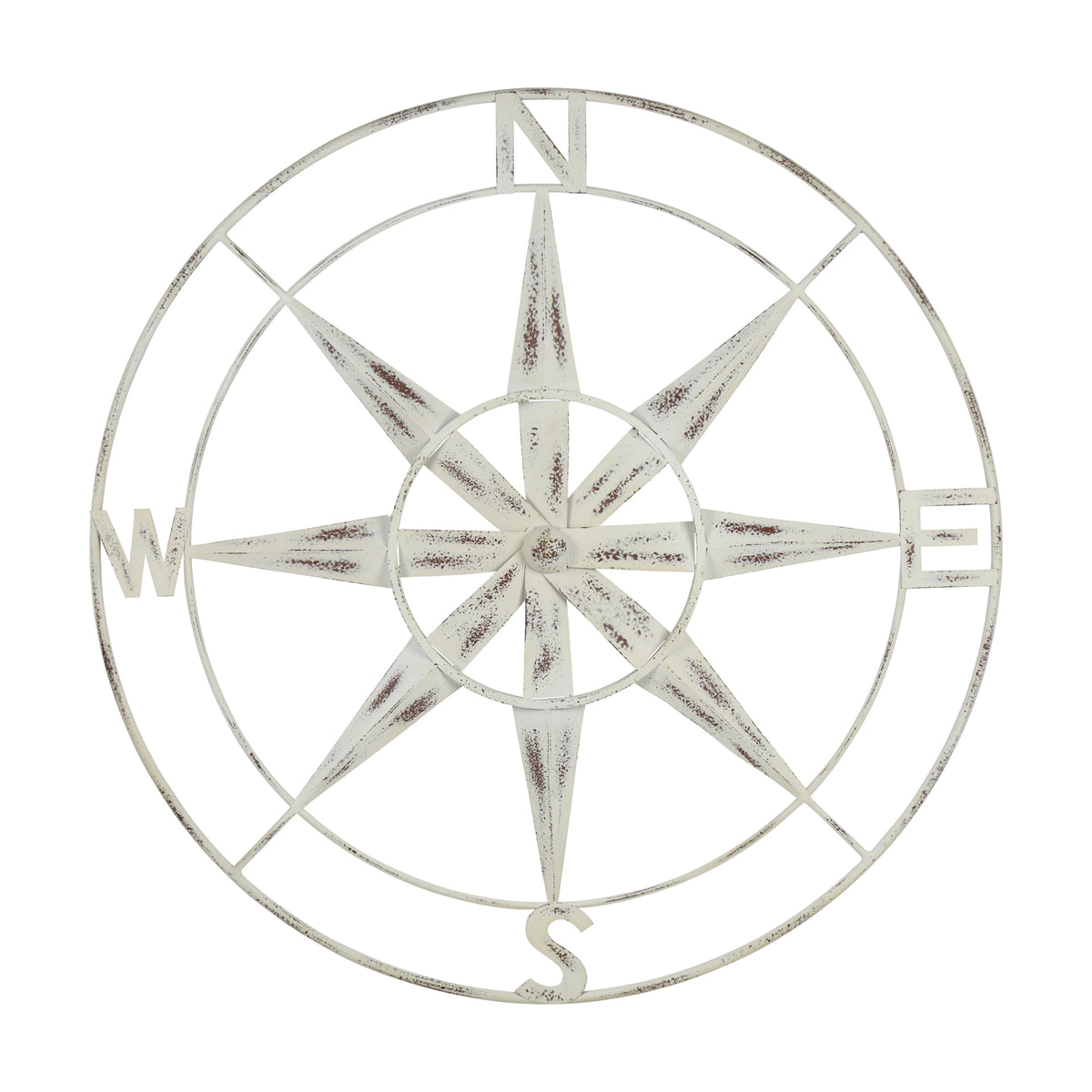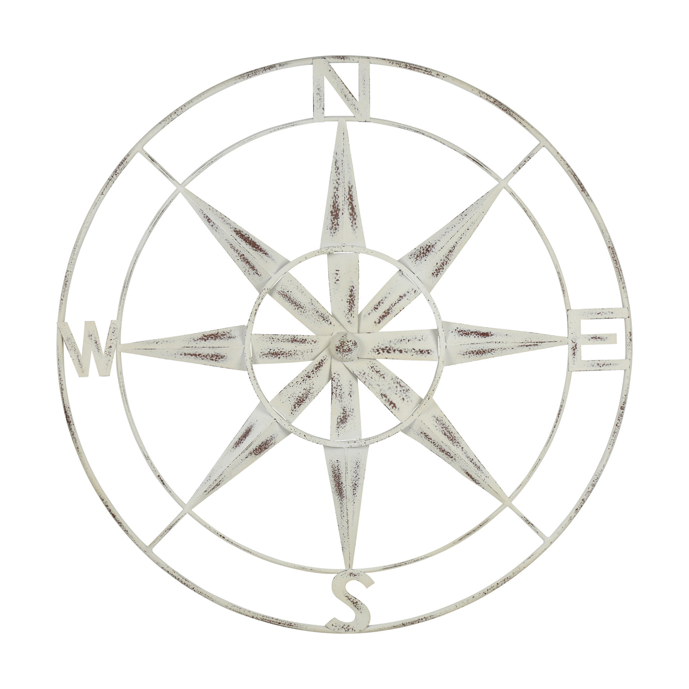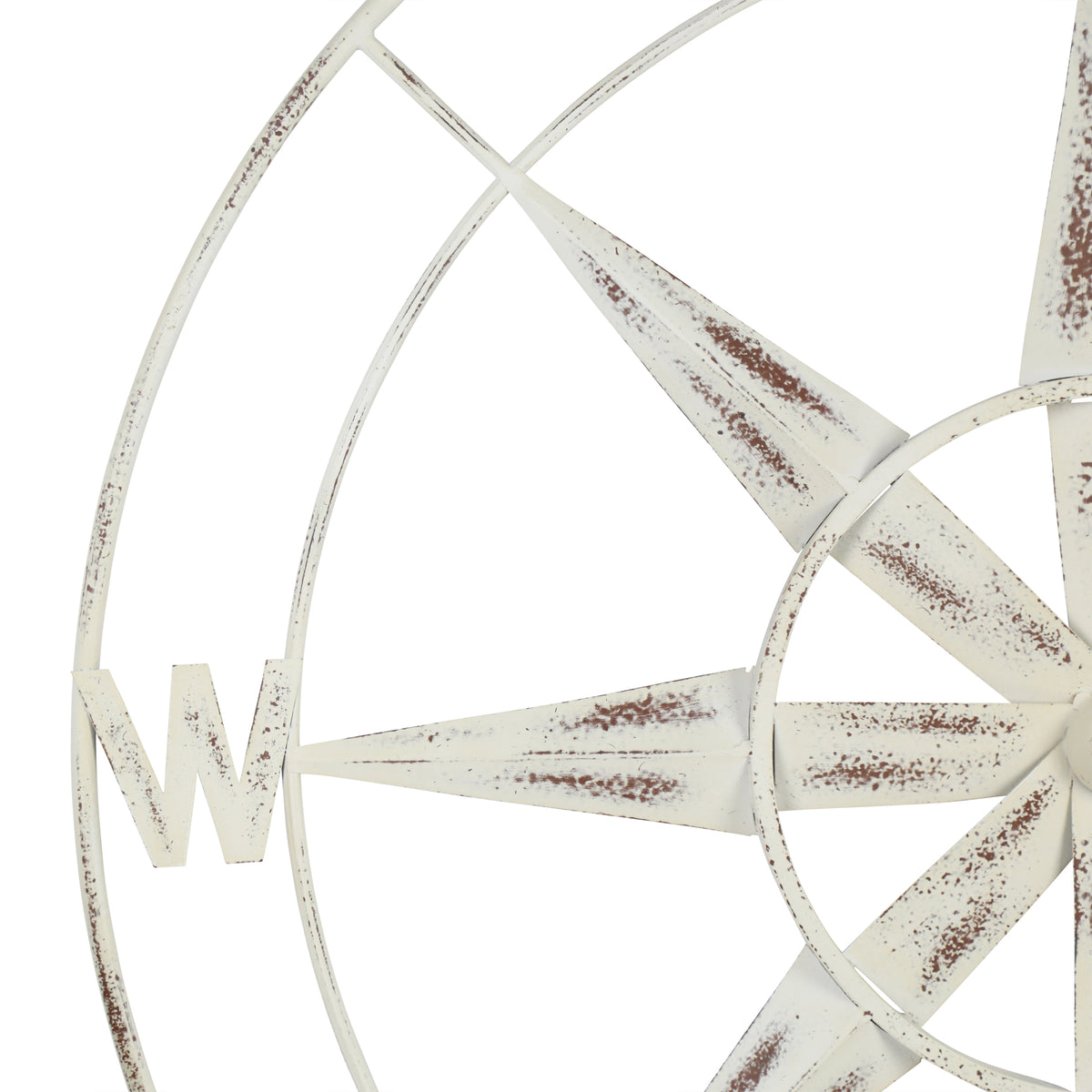 Decorate your wall with something unique Interior decor isnt just about having the most stylish or trendy space Its also a great way to express your creativity and have fun You want something thats unique memorable and will make a strong first impression the moment guests lay eyes on it If youre searching for a decorative piece that will truly stand out our oversized nautical compass wall art is a perfect choice Featuring a classic design with a modern twist this item measures 2650 X 100 X 2650 and makes the perfect centerpiece It is made out of 100 metal and the distressed white finish gives it a sense of history Features. Easy to clean by wiping with a damp cloth. Long lasting durability. Ready to hang for your convenience. Versatile enough to blend in with most themesSpecifications. Height 265 in. Width 265 in. Material 100 Metal. Color White. Style Coastal