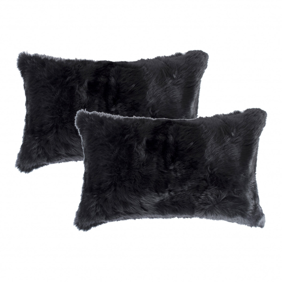 HomeRoots 100% Natural Rabbit Fur and Microsuede Set of Two 12' X 20' Black Rabbit Natural Fur Throw Pillows