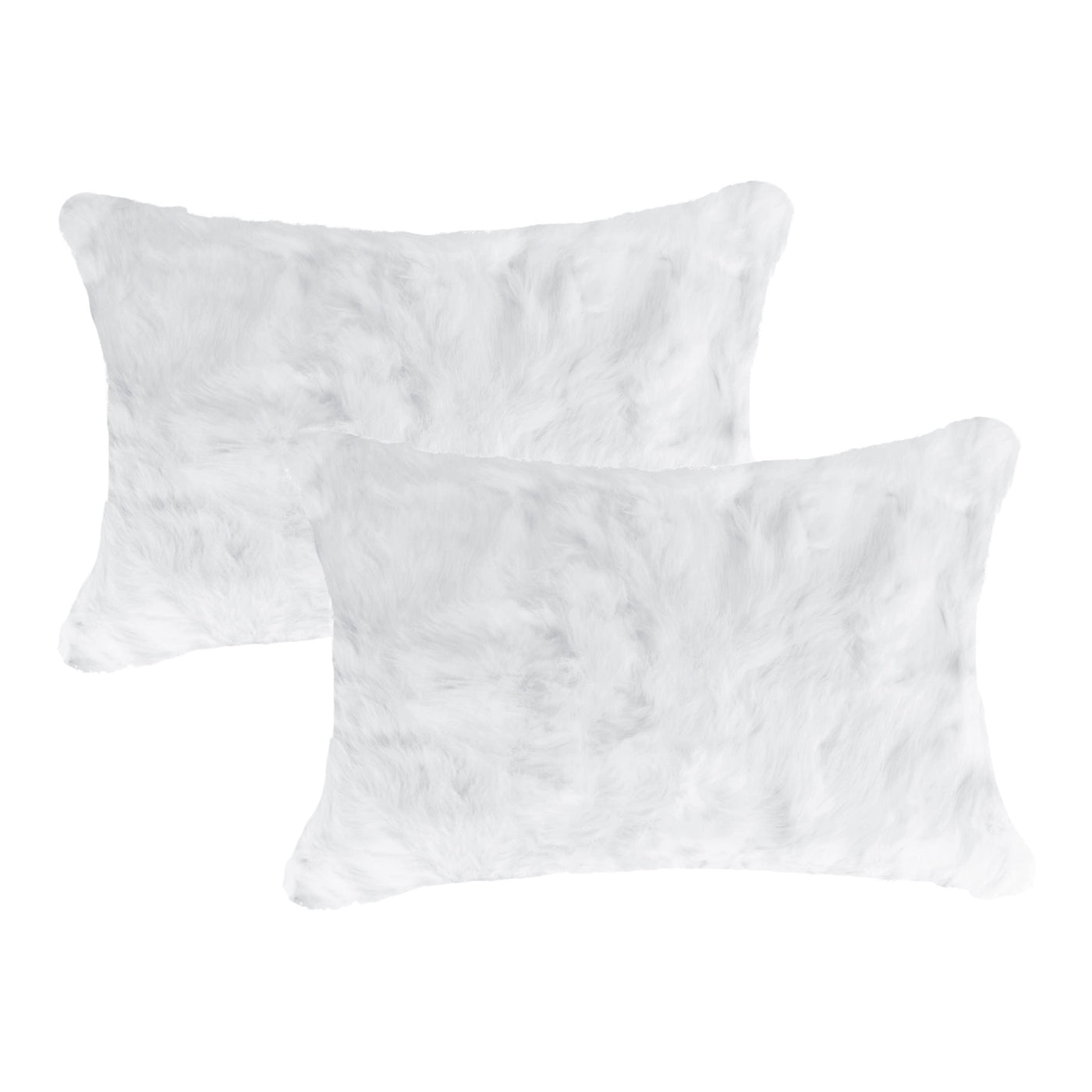 HomeRoots 100% Natural Rabbit Fur and Microsuede Set of Two 12' X 20' White Rabbit Natural Fur Throw Pillows