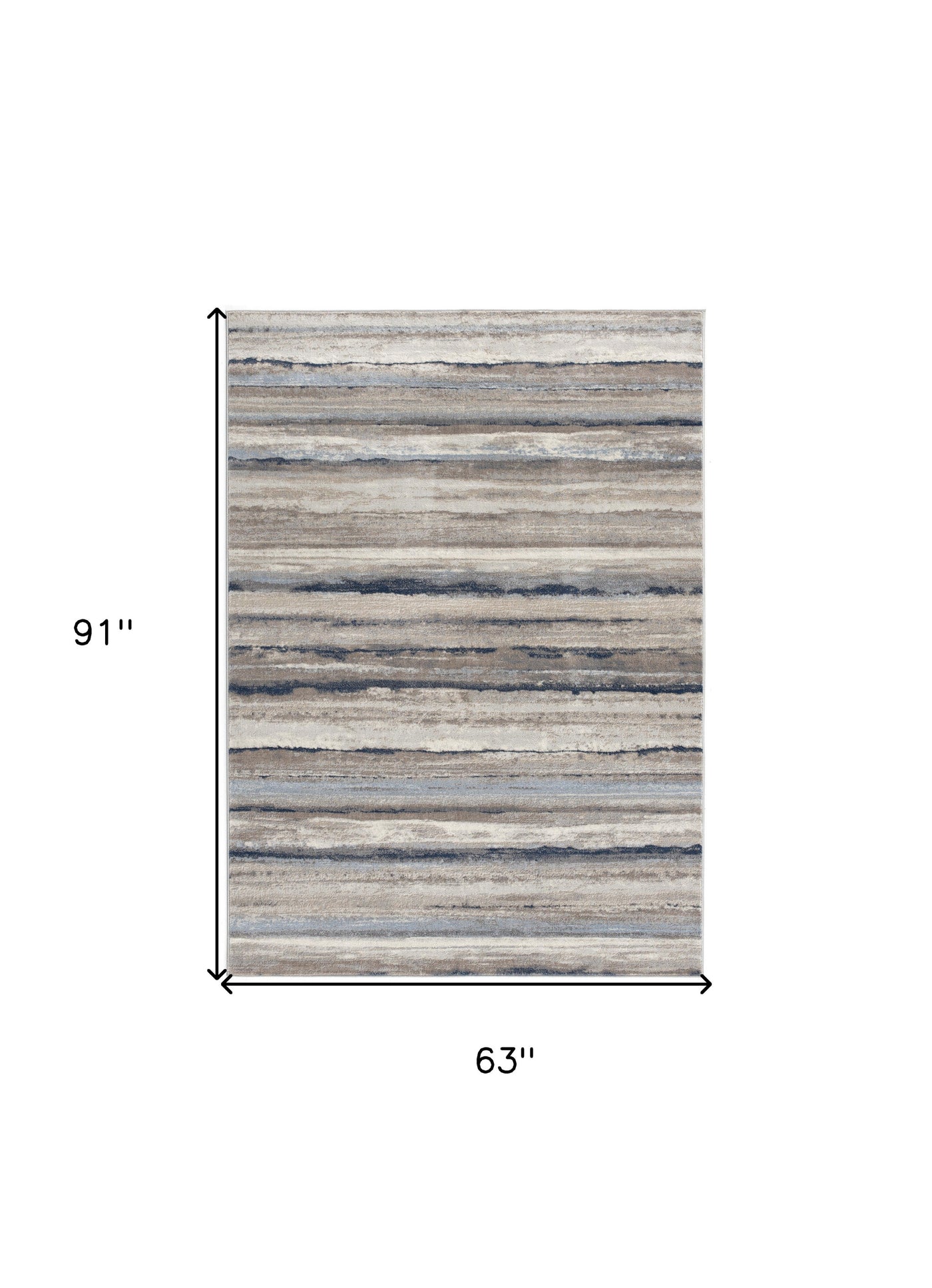 HomeRoots 100% Polypropylene 5’ x 8’ Blue and Beige Distressed Stripes Area Rug