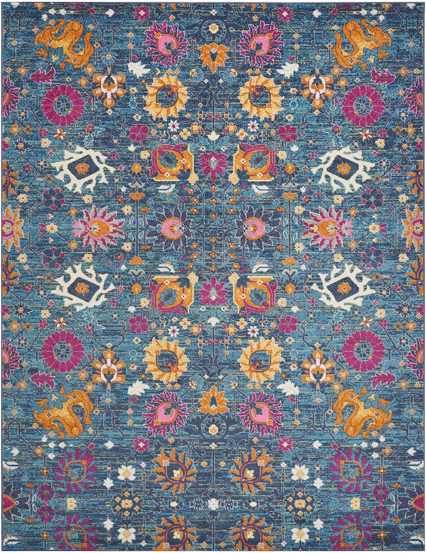 8 x 10 ft. Denim Blue Florals Distressed Area Rug HomeRoots offers a wide variety of choices, in the tensofthousands and growing, in furniture, lighting and home decor products at extremely competitive pricing. Bright, bold, and beautiful, this vibrant Denim Blue Florals Distressed Area Rug flaunts its intricacy in an elegant yet explosive style. The enchanting denim blue base with hints of saffron gold, magenta, and ivory in the multidimensional floral patterns is given a distressed finish to produce an exquisite look that is suitable for bohemian, modern, farmhouse, and vintage decor. Made in Turkey with 100% polypropylene material and the use of advanced power loom technology, this transitional rug is going to last for ages resisting stains while being very easy to clean. Place this at the center of your bedroom, living space, or sitting area and watch the colors come to life. Host a slight hint of Persian culture in a modern form with the addition of this brilliant area rug into your home. 8 x 10. Specifications. Color Denim Blue. Style Transitional. Shape Rectangle. Material Polypropylene. Size 8 x 10. Country of Origin Turkey. Dimension 1 H x 96 W x 120 D. Weight 35 lbs