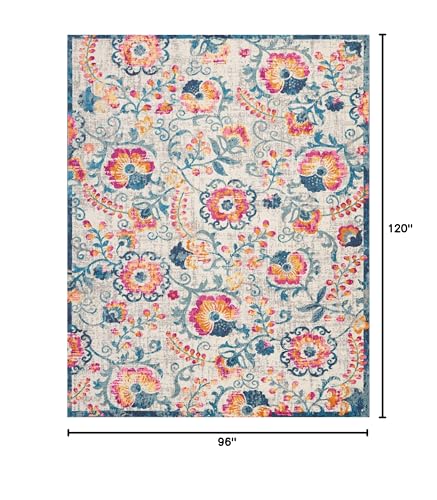 8 x 10 ft. Ivory Blue Floral Vines Area Rug HomeRoots offers a wide variety of choices, in the tensofthousands and growing, in furniture, lighting and home decor products at extremely competitive pricing. The tropical beauty of this Ivory and Blue Floral Vines Area Rug boasts beautiful flower elements in a chic modern color scheme that brings traditional and contemporary decor into harmony. The bold oversized flowers and vines are uplifted with bright shades of orange and magenta resting on a softtoned Ivory base and framed with deep blue borders. The masterful use of bright colors makes it ideal for modern, contemporary, bohemian, and traditional indoor styling. Made with 100% polypropylene to ensure enhanced durability, stain resistance, and easy maintenance. This exceptional rug feels as good as it looks due to the soft pile construction that is only possible with fine Turkish craftsmanship. Express your love for nature and vivacity with this beautiful area rug that will tie the aesthetics of your home together. 8 x 10. Specifications. Color Ivory, Blue. Style Transitional. Shape Rectangle. Material Polypropylene. Size 8 x 10. Country of Origin Turkey. Dimension 1 H x 96 W x 120 D. Weight 35 lbs