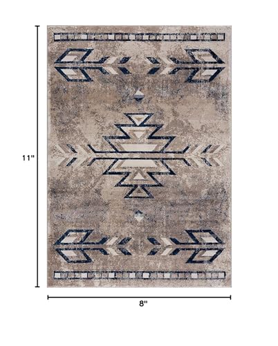 HomeRoots 100% Polypropylene 8’ x 11’ Beige and Blue Boho Chic Area Rug