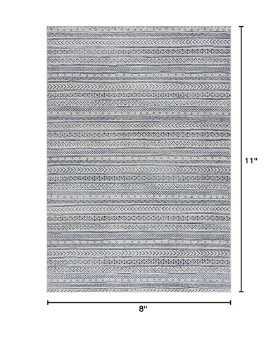 8 x 11 ft. Navy Blue Decorative Stripes Area Rug HomeRoots offers a wide variety of choices, in the tensofthousands and growing, in furniture, lighting and home decor products at extremely competitive pricing. Encompassing the details of bohemian styling in a sophisticated fashion, this Navy Blue Decorative Stripes Area Rug makes its place in any contemporary or casual setting. The intricately decorative patterns in navy blue are confined in fine stripes over an ivory base to create a hypnotizing effect that allures the gaze. Upholding the richness of Turkish craftsmanship, this rug is made of 100% inherently stainresistant polypropylene fibers which is not only easy to clean but also super durable to last for ages in the high traffic areas of your home. Besides its pristine look and nonchalant vibe, this rug offers a soft and smooth layer under your feet due to its high pile construction that adds to the surface interest. Simple and soothing in its elegant hues, this beautifully subtle area rug will induce a calm and relaxed environment into your living space while complementing the aesthetics of your modern interior. 128 x 93 x 0.4. Specifications. Color Navy Blue. Style Modern. Shape Rectangle. Material Polypropylene. Size 8 x 11. Country of Origin Turkey. Dimension 128 H x 93 W x 0.4 D. Weight 32 lbs