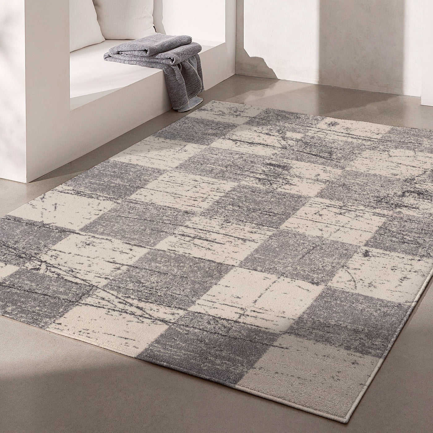 5 x 8 ft. White Gray Checkered Area Rug HomeRoots offers a wide variety of choices, in the tensofthousands and growing, in furniture, lighting and home decor products at extremely competitive pricing. Maintaining a subtle sophistication with an antique flair, this White and Gray Checkered Area Rug will align with the aesthetics of any contemporary or casual home. The ontrend checkered pattern in distressed gray and white add to the modern appeal while the scrapes on the surface bring a timeworn vintage vibe to the entire piece. Made to ensure enhanced durability and stain resistance, this rug is crafted in Turkey with 100% twisted polypropylene to stand up the messes and scratches of hightraffic indoor areas and keep its pristine look for years to come. The soft and cozy surface texture comes from the highpile construction to provide a layer of comfort under the feet as you step on it. Place this neutraltoned area rug on a hardwood or tile floor and it will effortlessly blend in with its surrounding. 89 x 63 x 0.8. Specifications. Color White, Gray. Style Abstract. Shape Rectangle. Material Polyester. Size 5 x 8. Country of Origin Turkey. Dimension 89 H x 63 W x 0.8 D. Weight 15 lbs