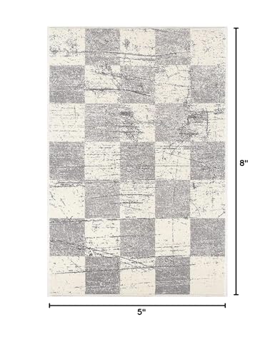 HomeRoots 100% Twisted Polyester 5†x 8†White and Gray Checkered Area Rug